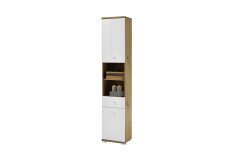 - Hochschrank mit 2 Türen (links angeschlagen), 4 Einlegeböden und 1 Schubkasten
