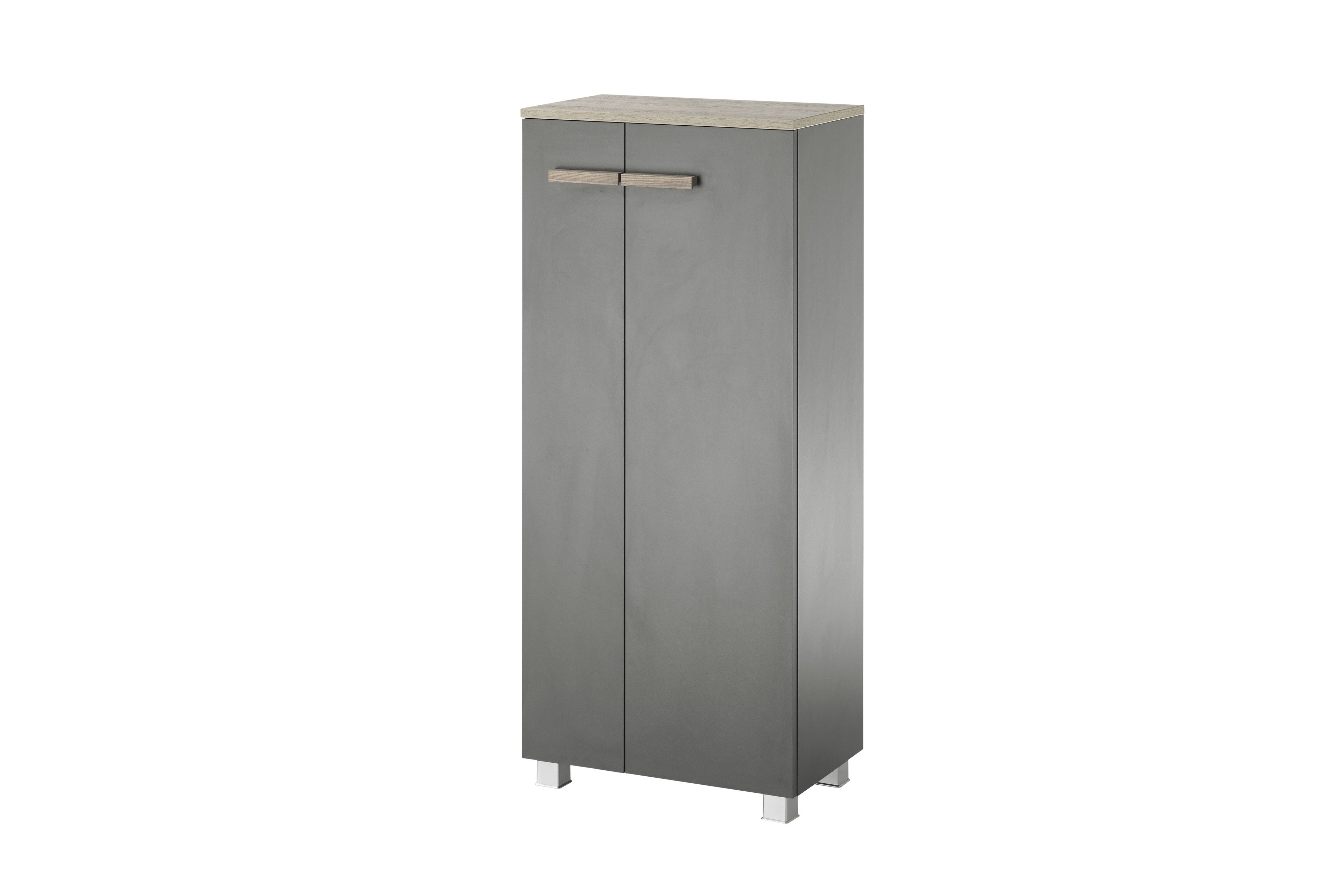 Für Ihr neues Gästebad haben Sie sich für die Badezimmerserie Solid aus dem Hause Kollektion Letz entschieden und Sie sind absolut begeistert von Ihren neuen Badezimmermöbeln. Der moderne Materialmix aus mattem Anthrazit und natürlichen Akzenten in Eiche, machen dieses Modell zu einem beeindruckenden Blickfang in Ihrer Wellness-Oase. Die strahlend frische Optik zaubert eine angenehme Wohlfühlatmosphäre in Ihre vier Wände und passt sich dank der schlichten Farbe individuell an jede bereits vorhandene Wandgestaltung an. In diesem Angebot befindet sich ein Mittelschrank mit zwei Türen und zwei Einlegeböden, für all Ihre Kosmetik- und Hygieneartikel, die Sie gern geordnet unterbringen möchten. Außerdem kann dieses Schmuckstück an der Wand hängend montiert werden oder aber auch auf eigenen Füßen stehen, welche schon inklusive sind. Erweitern Sie jetzt Ihr bereits bestehendes Badezimmerset Solid von Kollektion Letz mit diesem wunderschönen Mittelschrank und freuen Sie sich gespannt auf Ihre Lieferung.