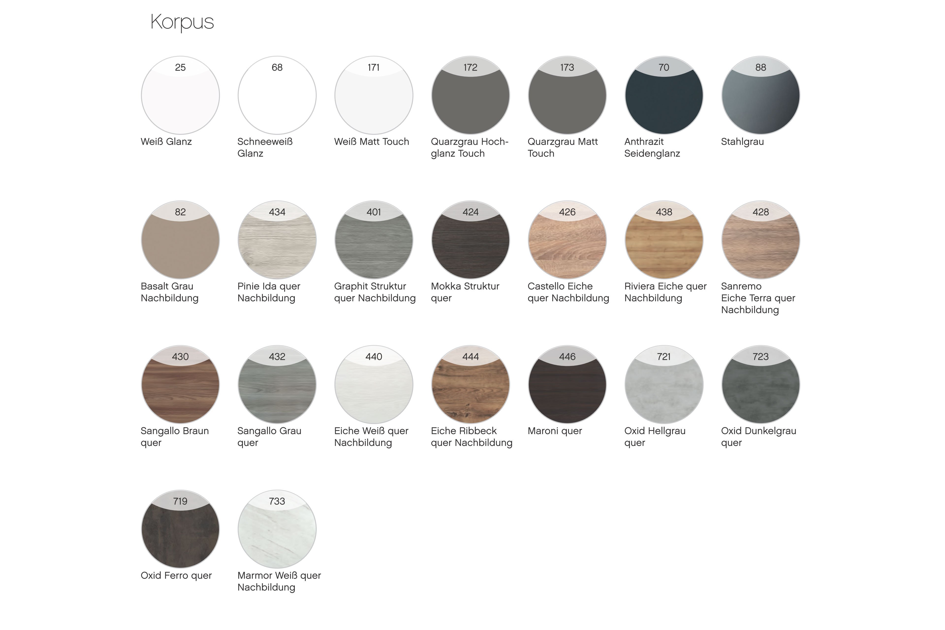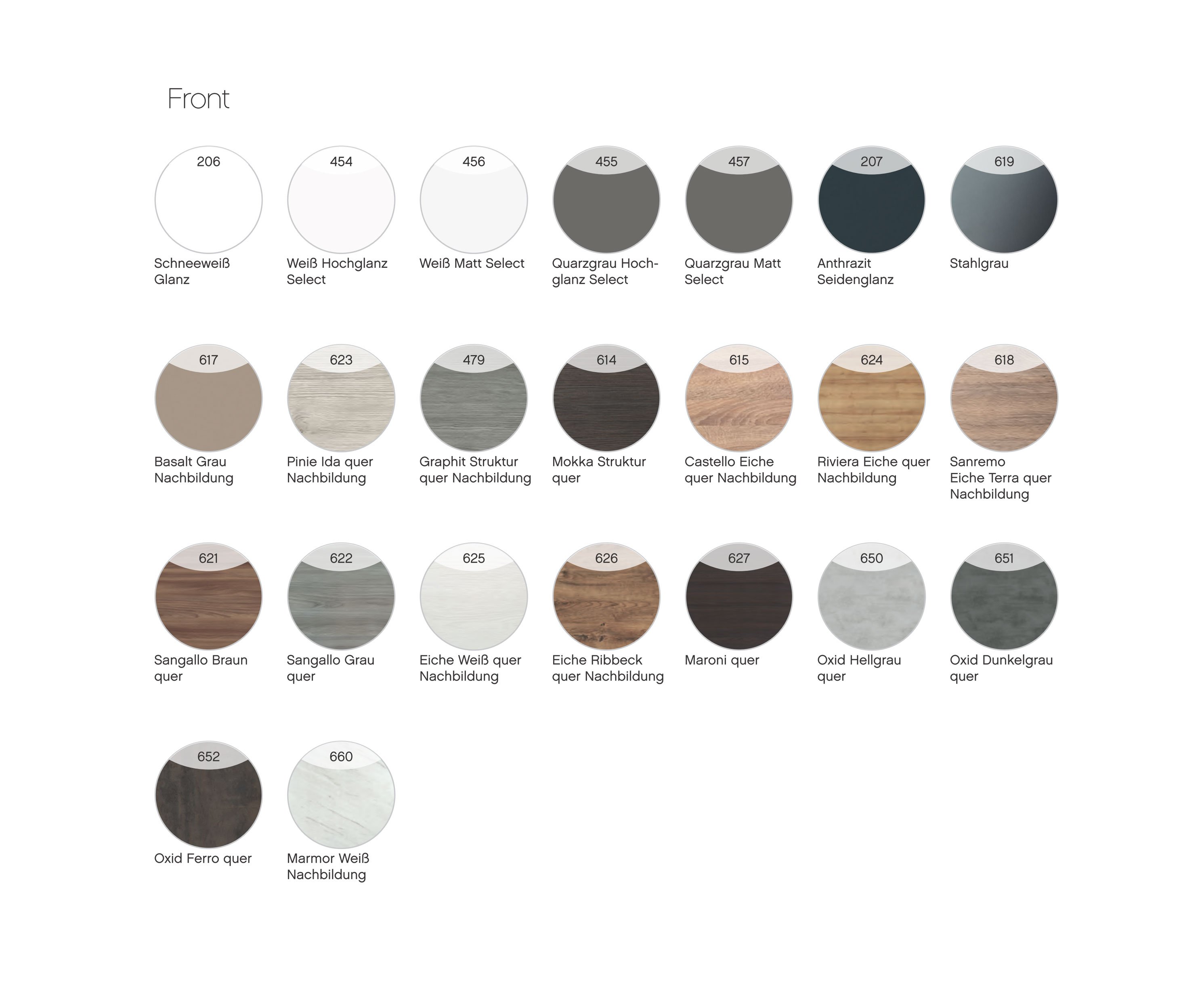 Ein durchgängiger Dekorverlauf zwischen einzelnen Frontteilen kann nicht gewährleistet werden.