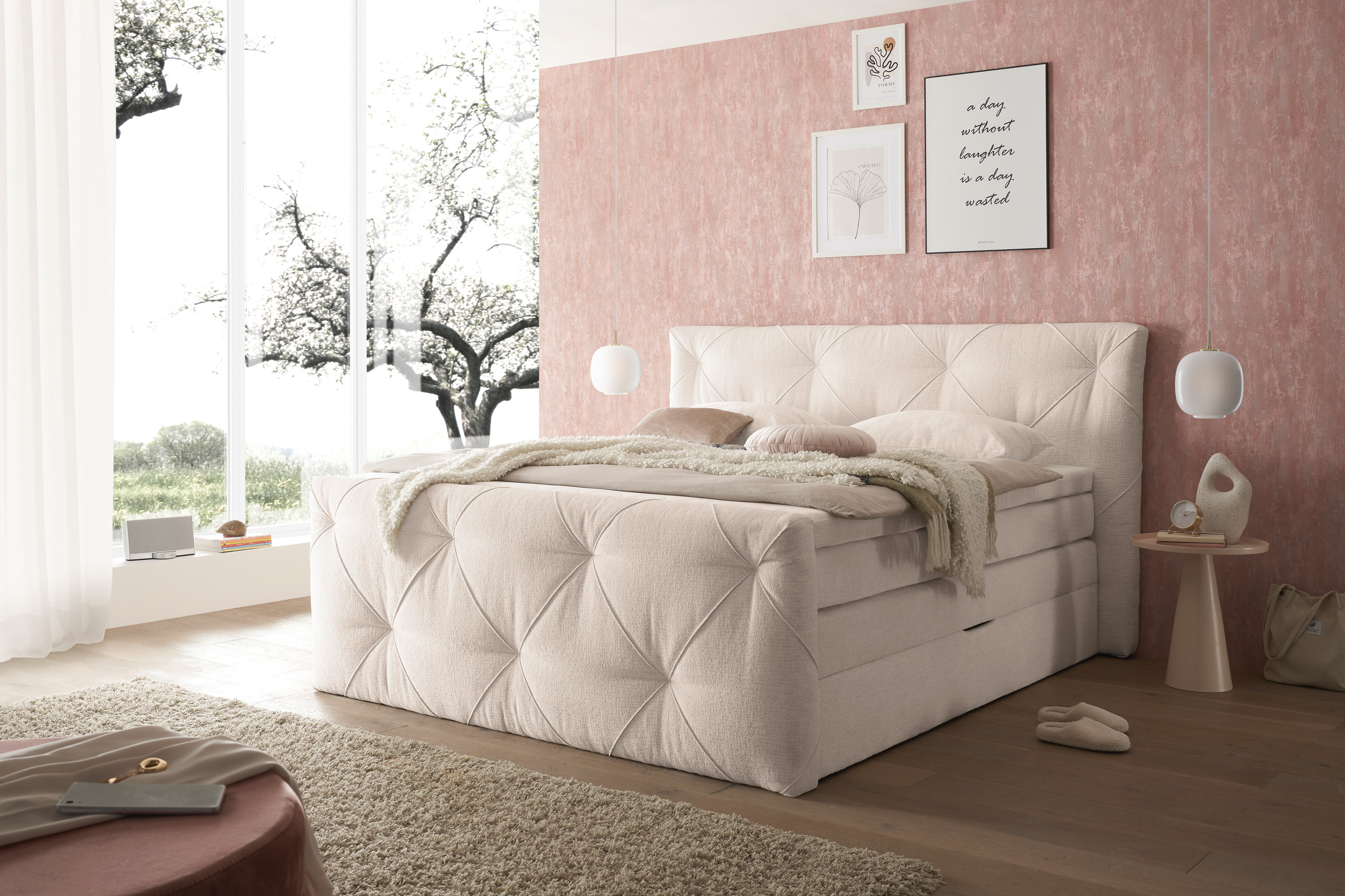 Boxspringbett ivory von ED-Lifestyle - Modell Indiana-Dream Eine bunte Mischung aus Design, Funktionalität und Komfort.