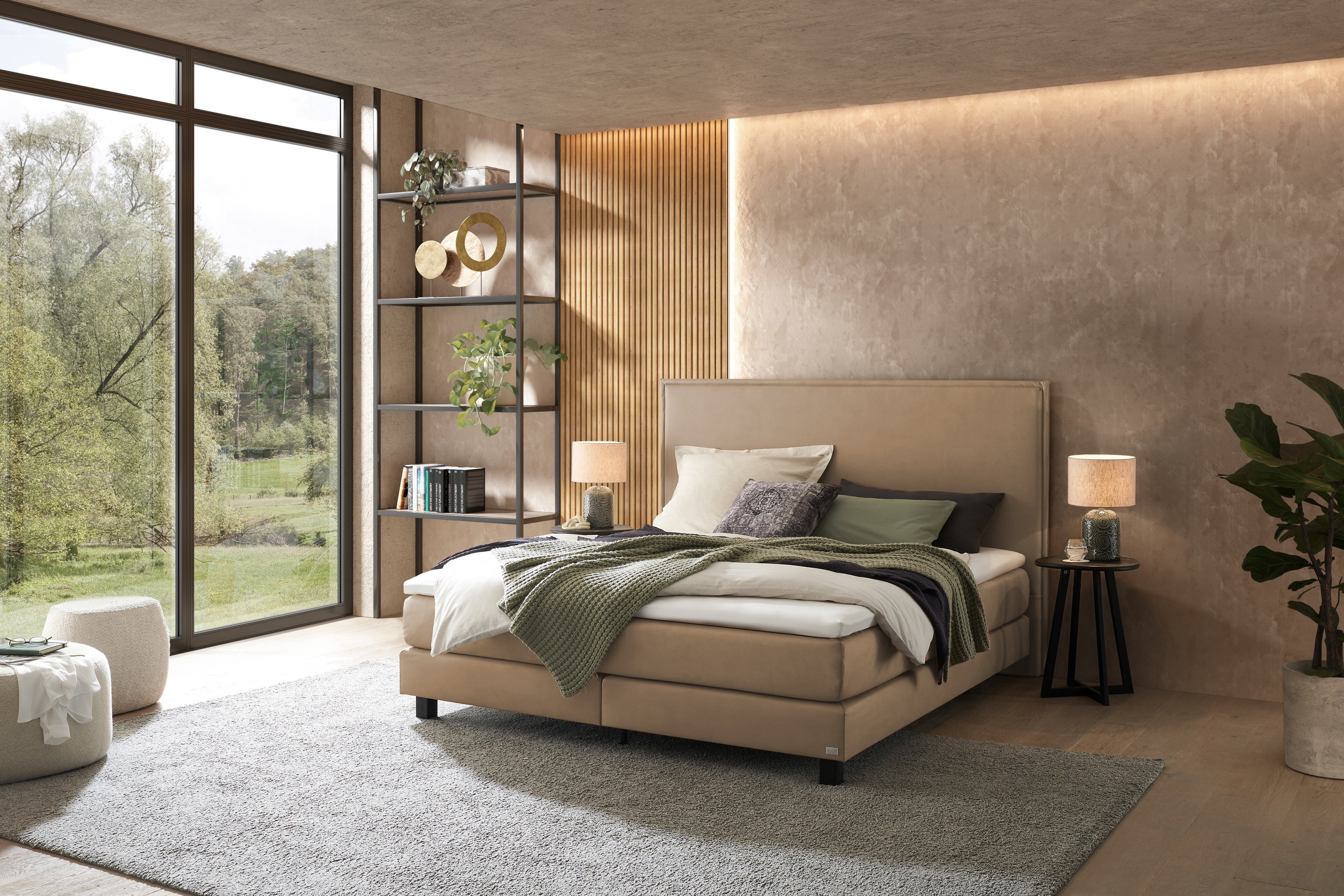 Oft fällt es schwer, sich im Großstadtdschungel zurechtzufinden - ein Hochhaus sieht aus wie das andere, die Vielzahl an Angeboten macht es einem beinahe unmöglich, sich zu entscheiden und einen Rückzugsort zu finden, an dem man sich entspannen kann, ist eine große Herausforderung. Daher haben Sie sich Ihr eigenes kleines Paradies in einem ruhigen Waldstück und Ihrem Zuhause geschaffen: ein Zusammenspiel von kalten und warmen Farben schmückt den Raum und ein traumhaftes Boxspringbett steht im Mittelpunkt des Schlafzimmers, welches ein Höchstmaß an Komfort und ein Stückchen Natur auf so zauberhafte Art miteinander vereint. Mehr benötigen Sie auch nicht, um sich rundum wohlzufühlen und jeden Morgen mit einem Lächeln zu erwachen, denn schon allein das Boxspringbett Fiona von Hasena aus der Comfort-Kollektion beschert Ihnen solch ein traumhaftes Liegegefühl, dass Sie den Eindruck bekommen, als würden Sie sich in Ihrem nächsten Urlaub befinden. Taschen-Federkerne sowohl im Untergestell als auch in der Matratze sind bereits die perfekte Basis für einen gesunden Schlaf, welcher mit einem der optional erhältlichen Topper garantiert noch zusätzlich versüßt wird. Wählen Sie zudem aus unterschiedlichen Liegeflächen und Härtegraden oder komplettieren Sie Ihr Schlafzimmer mit weiteren hinreißenden Beimöbeln der Hasena-Kollektion. Boxspringbett Comfort - das Himmelreich auf Erden.