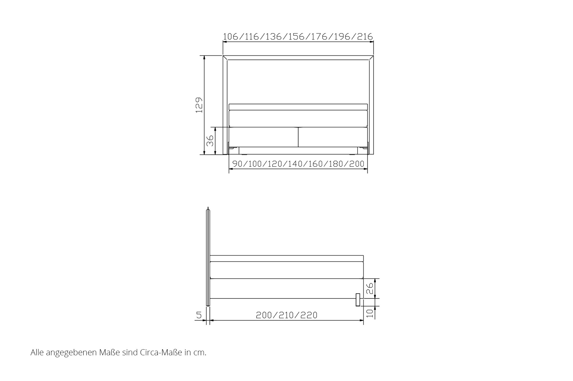 Hinweis! Der Bezug der Stoffmatratzen passt sich der gewählten Bezugsauswahl des Untergestells / Kopfteils an.
