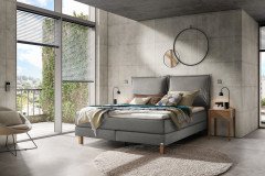 Sind Sie nicht auch sofort verzaubert, wenn Sie sich das wundervolle Boxspringbett Bonita von Hasena ansehen? Der geschmackvolle graue Stoffbezug ummantelt die Bonell-Federkern-Boxen, die Tonnen-Taschen-Federkern-Matratze sowie das weich gepolsterte Kopfteil und erhält durch die Kissenotik am Haupt ein sinnliches Gesamtbild. Die massiven Holzfüße in Eiche bright tragen das schöne Kunstwerk und setzen rustikale Akzente. Somit fügt sich das Boxspringbett in jeden bestehenden Einrichtungsstil ein, egal, ob romantisch verspielt, klassisch elegant oder im industriellen Loftcharakter. Passen Sie sich Bonita auf Ihre Wünsche an und wählen Sie den passenden Bezug zu Ihren Vorlieben. Unter dem Menüpunkt „Farbe ändern“ finden Sie ausgewählte Stoffe sowohl in Microfaser als auch Flachgewebe, welche Sie sich als Muster zusenden lassen können. Auf Grund der verkürzten Lieferzeit des Pronto-Programms müssen Sie auch nicht lange auf Ihr Traumbett warten. Bei weiteren Fragen steht Ihnen unser kompetentes Verkäuferteam vor Ort, im Chat oder telefonisch gerne zur Verfügung. Genießen Sie Qualität, modernes Design und Komfort vereint in einem Bett - mit Hasena, dem Spezialisten für Schweizer Möbel.
