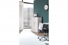 Ausreichender und geeigneter Stauraum ist, neben einem ergonomischen Arbeitsplatz, in jedem Büro das A und O. Das Möbelprogramm Pronto aus der Kollektion Letz bietet Ihnen dafür sowohl kleine als auch große Schranklösungen an – hier stellen wir Ihnen eine der kleinen Ausgaben vor. Das kompakte Aktenschränkchen ist in freundliches, helles Lichtgrau gewandet. Mit einer Höhe von rund 111 cm bietet es zwei abschließbare Türen, hinter denen sich ein Fachboden befindet, während Ihnen darüber zwei breite Schubkästen zur Verfügung stehen. Der vielseitige Schrank lässt sich hervorragend mit weiteren Büromöbeln aus der Kollektion Letz kombinieren, beispielsweise mit dem zugehörigen Programm Pronto, welches Sie in unserem Online-Shop vorfinden. Ob weiterer Stauraum oder ein Schreibtisch – erlaubt ist, was gefällt.