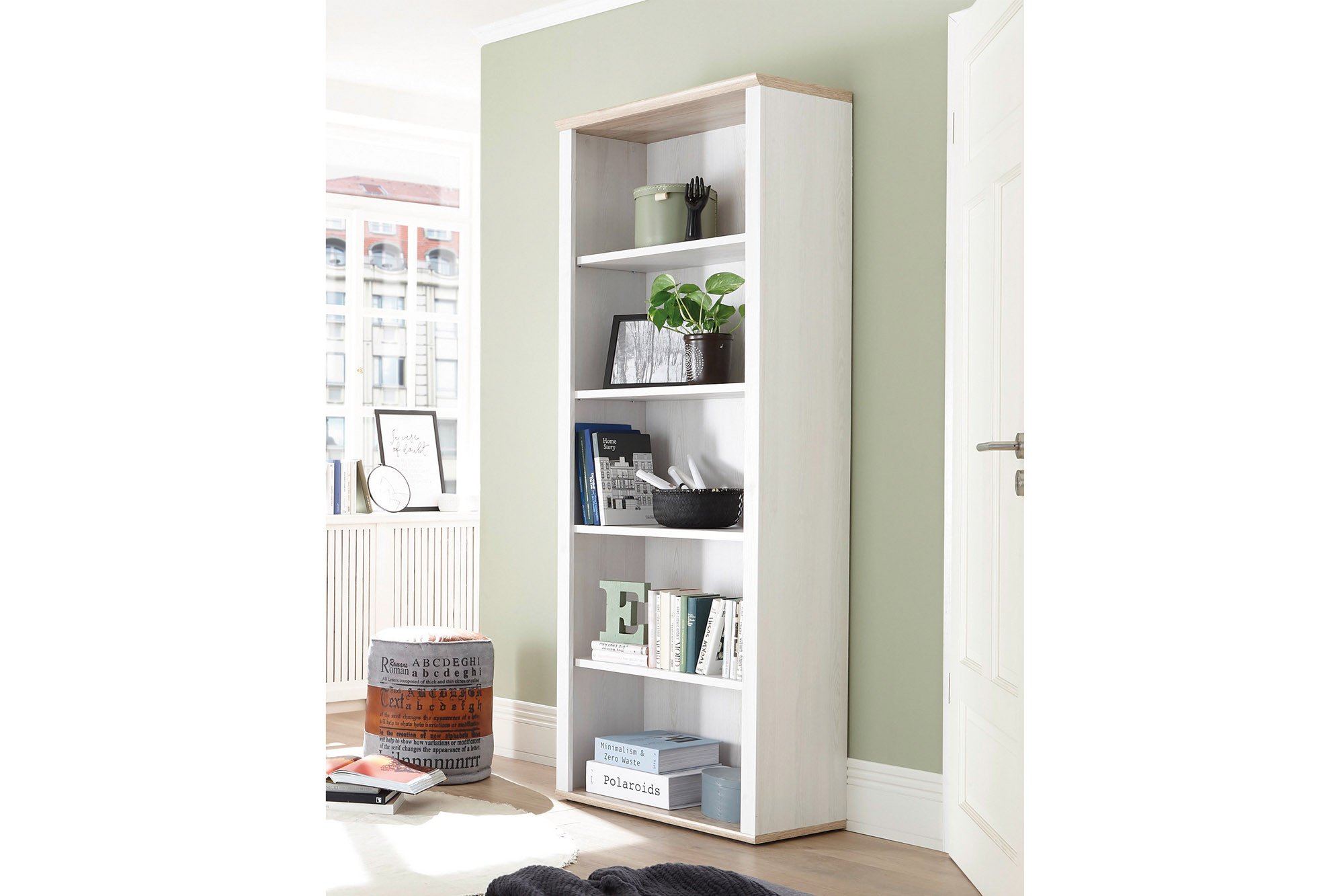 Mit dem Modell Romantik aus der Kollektion Letz wird Ihnen ein Hauch von skandinavischem Landhaus-Flair vermittelt, welches Sie begeistern wird. Helle Weiß- und Brauntöne in den ressourcenschonenden Holznachbildungen geben hier den Ton an, was eine natürliche Leichtigkeit in Ihre vier Wände bringt. Das hier angebotene Regal bietet Ihnen mit seinen fünf Böden die Möglichkeit, einen wahren Blickfang im Raum zu schaffen. Dekorieren Sie Ihr Regal Romantik aus der Kollektion Letz mit Büchern, Topfpflanzen, Aktenordnern oder auch den Unterlagen für das Home Office – alles findet hier übersichtlich seinen Platz, sodass Sie sich voll und ganz in Ihrem Zuhause wohlfühlen können.