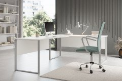 Eckschreibtisch aus der Kollektion Letz - Modell Amanda in Weiß mit Stahlprofil-Gestell Kollektion Letz - dynamisches Sortiment in aktuellen Farben und Optiken