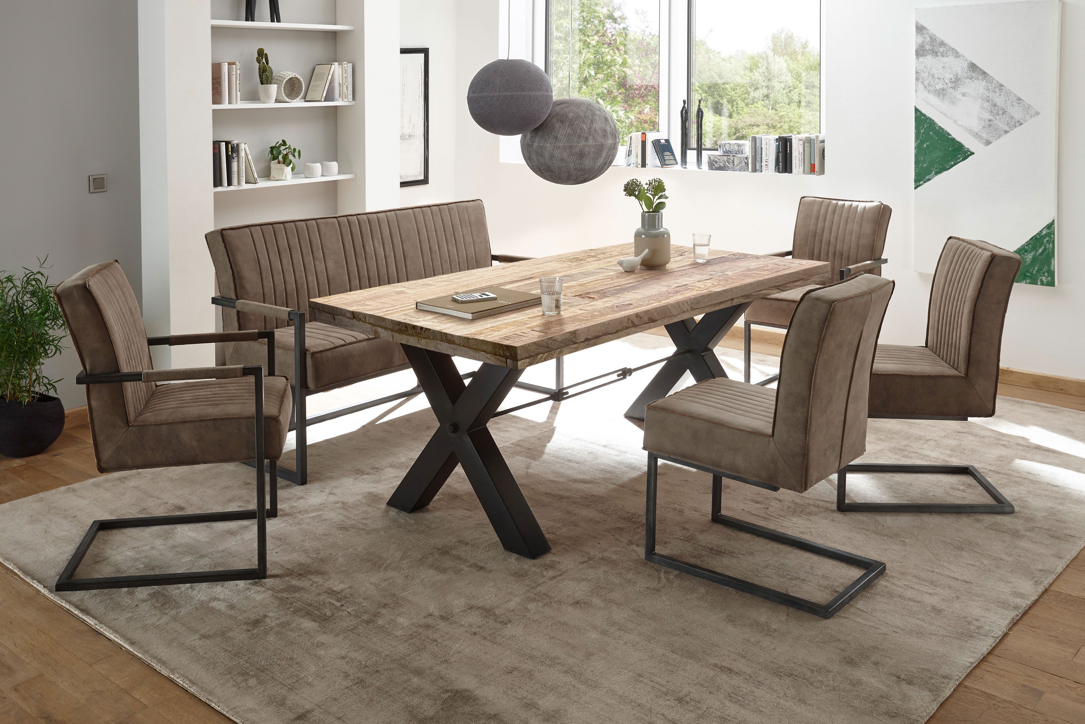 Dank seiner rustikalen und stabilen Tischplatte aus Mango Wood, hinterlässt der Esstisch Dehli aus der Kollektion Letz einen einmaliges Flair in Ihrem Zuhause. Das schwarze Metallgestell, welches in einer X-Form daherkommt und zudem noch durch eine raffinierte Querstrebe verbunden ist, bietet nicht nur den optimalen optischen Kontrast, sondern gibt dem ganzen Modell den gewünschten halt und die gewollte Stabilität. Durch seine beachtliche Breite von ca. 200 cm bietet Ihnen das Tischmodell viel Platz für Ihre Speisen, welche Sie mit Ihren Liebsten oder Ihren Freunden bei einem gemütlichen Essen einnehmen möchten. Jeder bekommt hier ausreichend Platz, ohne sich eingeengt zu fühlen. So entsteht auch ein Gefühl der Behaglichkeit. Mit all den Guten Eigenschaften schafft der Kollektion Letz Tisch Dehli einen Spagat zwischen der Moderne und dem klassischen Stil und wird Ihre Räumlichkeiten, ganz gleich ob im Wohnzimmer, im Esszimmer oder in der Küche zu einem Hingucker erscheinen lassen.