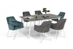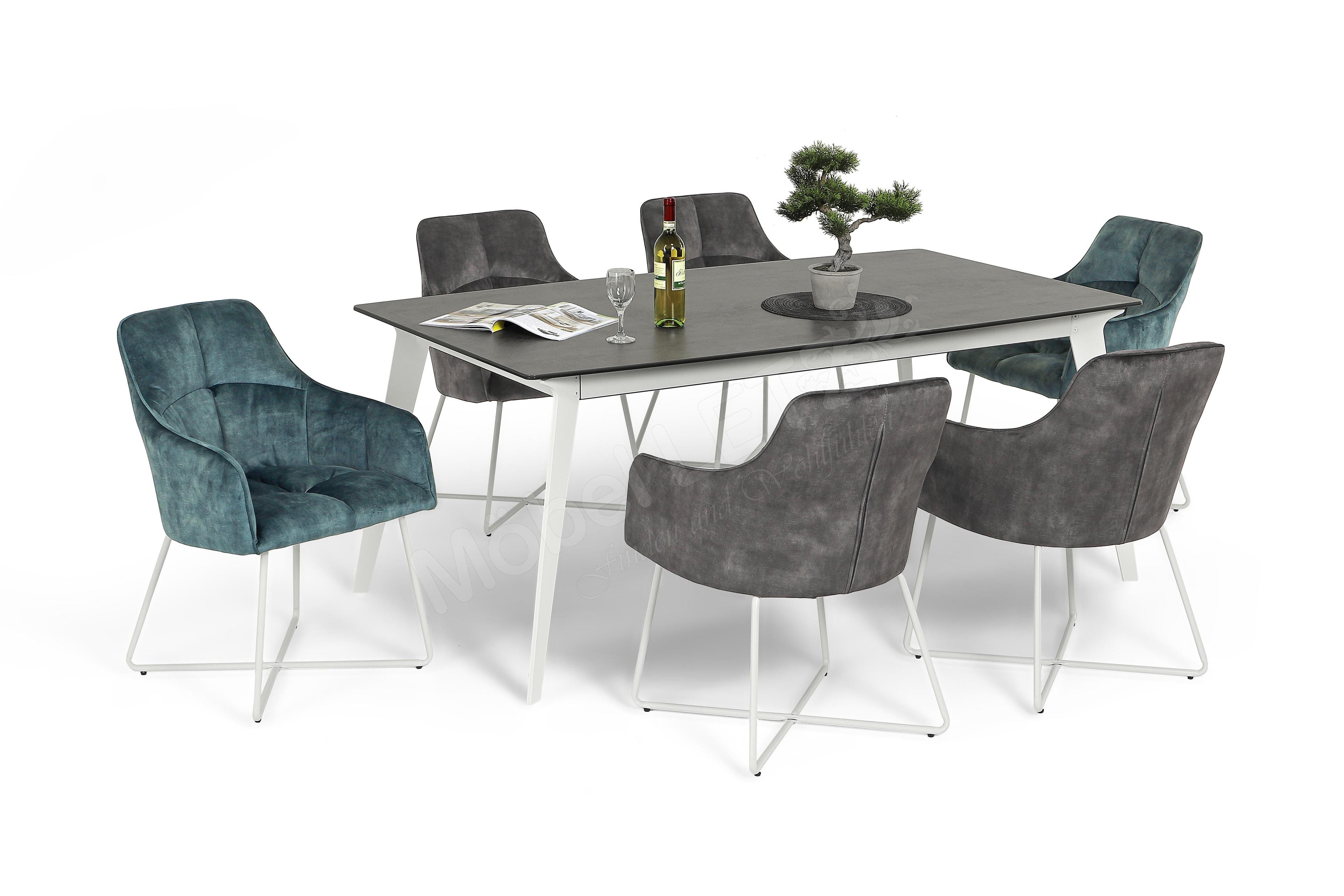 Mit dem eleganten Tisch-Modell Infiné aus der Kollektion Letz erfüllen auch Sie sich Ihren persönlichen Traum einer zeitlosen Einrichtung in Ihrem Essbereich. Der Esstisch zeichnet sich zum einen durch sein klares, geradliniges Design und zum anderen durch die Wahl hochwertiger Materialien aus. Somit besitzt der Kollektion Letz Tisch eine Keramik-Platte in der Farbe Iron Moss, welche sich, dank der pflegeleichten Beschaffenheit, ideal für alltägliche Situationen am Esstisch eignet. Das Gestell, mit seinen vier ausgestellten Füßen, besteht aus Epoxid-Stahl in weißer Ausführung und schafft einen stilvollen Kontrast zur dunkel gehaltenen Tischplatte. Die Stühle Palma von massiv.direkt stehen Ihnen zudem über unsere Zusatzoptionen zum Hinzubuchen parat und sorgen, dank ihrer großzügigen Polsterung, für einen hervorragenden Sitzkomfort an Ihrem neuen Kollektion Letz Esstisch Infiné.