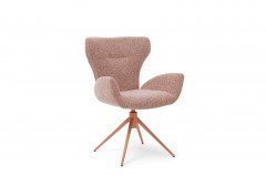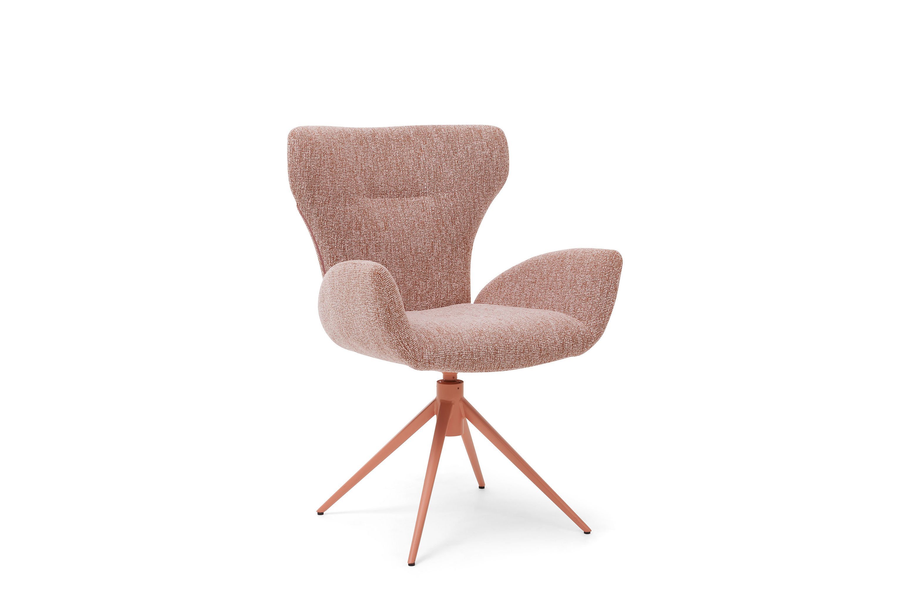 JustB! SP150 von Musterring – ausgestattet mit einem Bezug aus hochwertigem Jaquard-Flachgewebe in der edlen Farbe blush, verkörpert dieses Stuhlmodell eine gelungene Synthese aus zeitloser Eleganz und modernem Komfort. Der charakteristische Jaquard-Flachgewebe-Stoff, der durch seine weiche, texturierte Oberfläche besticht, verleiht ihm nicht nur ein ansprechendes visuelles Erscheinungsbild, sondern sorgt auch für ein angenehmes Sitzgefühl. Die Farbnuance Blush strahlt eine subtile Raffinesse aus und fügt sich harmonisch in unterschiedlichste Einrichtungsstile ein, sei es im klassischen Ambiente oder in einem zeitgenössischen Raum. Das filigrane Stativgestell in einem roséton lackiert, bildet einen harmonischen Kontrast zum opulenten Stoffbezug und unterstreicht die stilvolle Anmutung des Möbels. Die schlanken Linien des Gestells verleihen dem Musterring Stuhl eine Leichtigkeit, die ihn zu einem echten Blickfang in jedem Raum machen. Der Sitzkomfort ist herausragend und lädt zum Verweilen ein. Allumfassend präsentiert sich der Stuhl als ein Meisterwerk des Designs, das durch seine zeitlose Note und den hohen Komfort besticht. Er ist nicht nur ein Möbelstück, sondern ein Statement für Stil und Eleganz, das in jeder Wohnumgebung seinen Platz findet und sowohl ästhetische als auch praktische Ansprüche erfüllt.