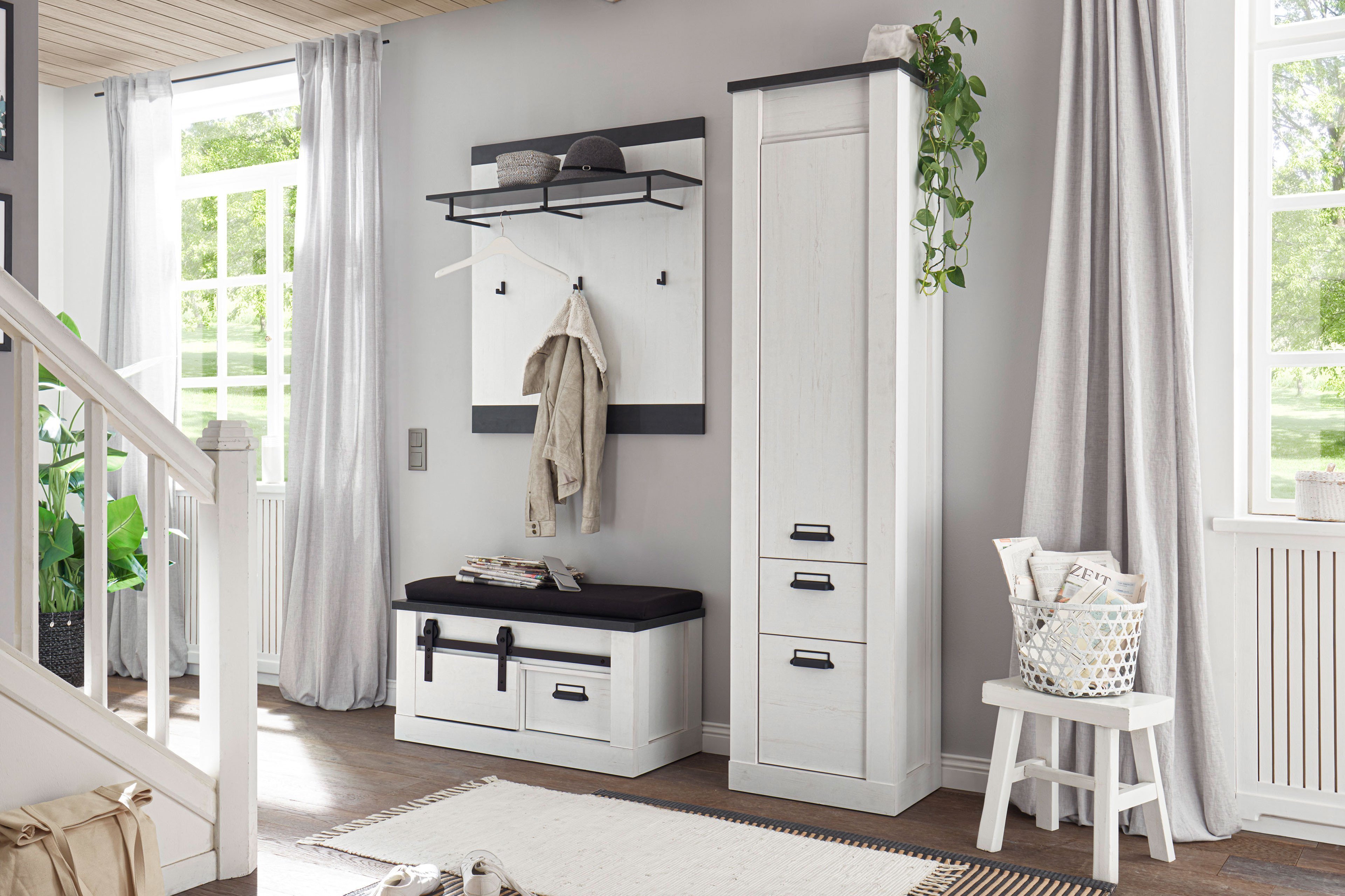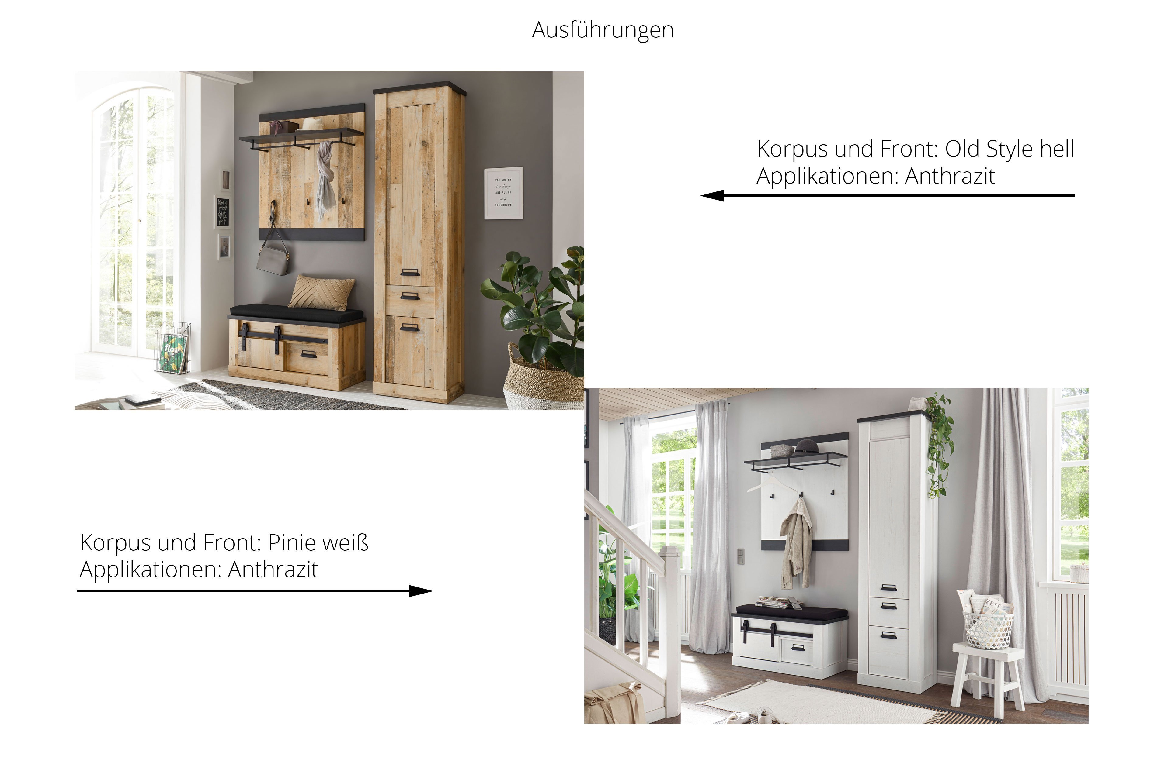 Garderobe von Kollektion Letz - Modell Sherwood in Anthrazit/ Pinie weiß Sherwood | moderner Landhausstil.