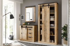 Das wunderschöne Garderobenprogramm Sherwood aus dem Hause Kollektion Letz bringt Ihnen einen besonderen Landhausstil in Ihre Diele. In der reflektieren Fläche des Spiegels haben Sie die Möglichkeit, vor dem Ausgehen noch einmal Ihr Aussehen und Ihr Outfit zu checken. Die wunderschöne Flurkommode bietet mit seinen drei Schubfächer und einer Tür mit einem Einlegeboden dahinter reichlich Platz für Ihre Schuhe, aber auch für allerlei Accessoires oder Schuhputzartikel. Auf die Ablage lässt sich neben einer dekorativen Pflanze, auch eine kleine Schale für Ihre Schlüssel stellen, damit alles seinen geordneten Platz bekommt. Für mehr Stauraummöglichkeit können Sie unter den Zusatzoptionen noch einen großen Garderobenschrank dazu bestellen, damit alle Ihre Schuhe ordentlich vor Licht und Staubeinfluss geschützt sind. Holen Sie sich jetzt ein Stück Natur in Ihr Entree mit der Garderobe Sherwood aus dem Hause Kollektion Letz.