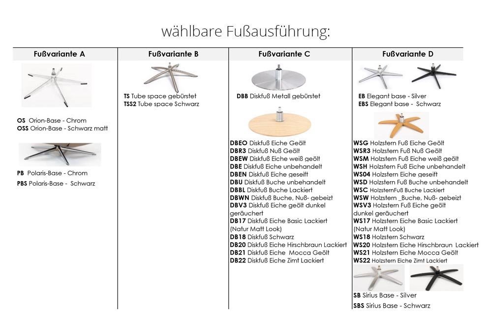 - Fußvariante: A - OS Orion Base Chrom