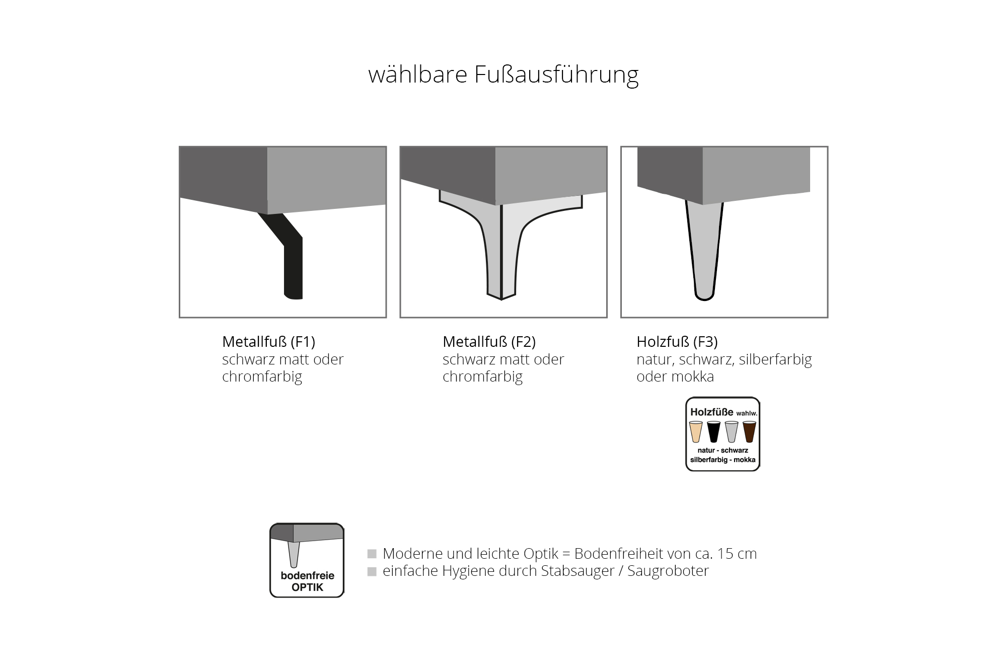 - Fußausführung: F2 - Metallfuß schwarz matt, Höhe ca. 15 cm