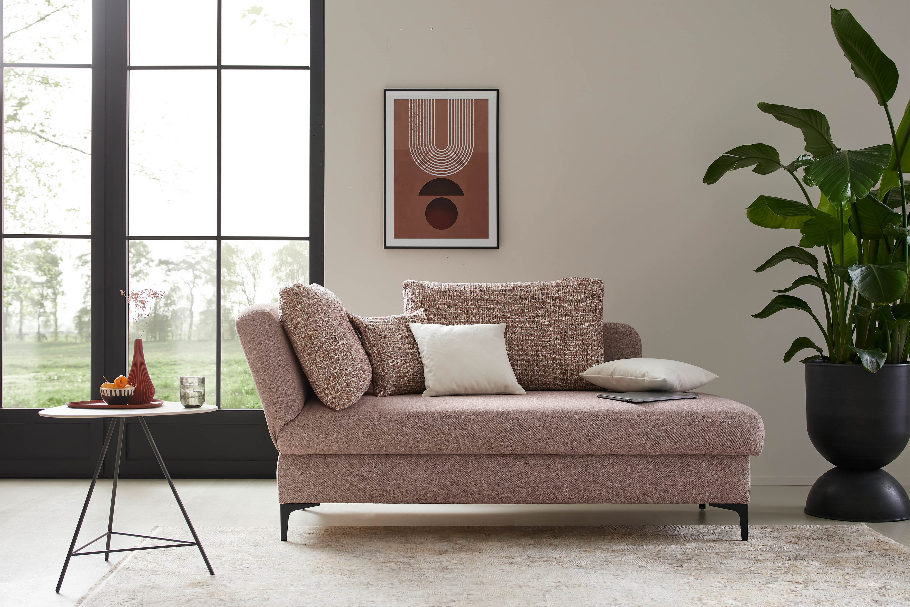 Ein eleganter Traum von einladender Gemütlichkeit in zartem Rosé wartet hier bereits auf Sie. MR 720 von Musterring ist eine schicke Recamiere mit vielfältigen Talenten, die Ihnen den perfekten Platz zum Sitzen, Loungen oder Liegen bereitstellt. Für zusätzlichen Komfort können Sie die abgebildeten Kissen, einschließlich der großen Rückenkissen, gleich mit dazu bestellen. Eine große Auswahl an Bezügen sowie verschiedene Fußdesigns erlauben es Ihnen, die Liege nach Ihrem Geschmack zu konfigurieren. Klappen Sie die Lehne um, bis Sie eine eindrucksvolle Liegefläche von rund 80 x 210 cm erhalten, und machen Sie es sich bequem. Kein Platz mehr für die Kissen? Kein Problem – heben Sie die Sitz- und Liegefläche nach oben, dann wird der integrierte Stauraum zugänglich, in dem Sie Kissen, Decken oder noch vieles mehr im Handumdrehen unterbringen können. Egal, ob Sie sich selbst ein Nickerchen gönnen möchten oder sich ein spontaner Übernachtungsgast angekündigt hat – dieses kleine Schlafsofa von Musterring ist immer eine gute Wahl.