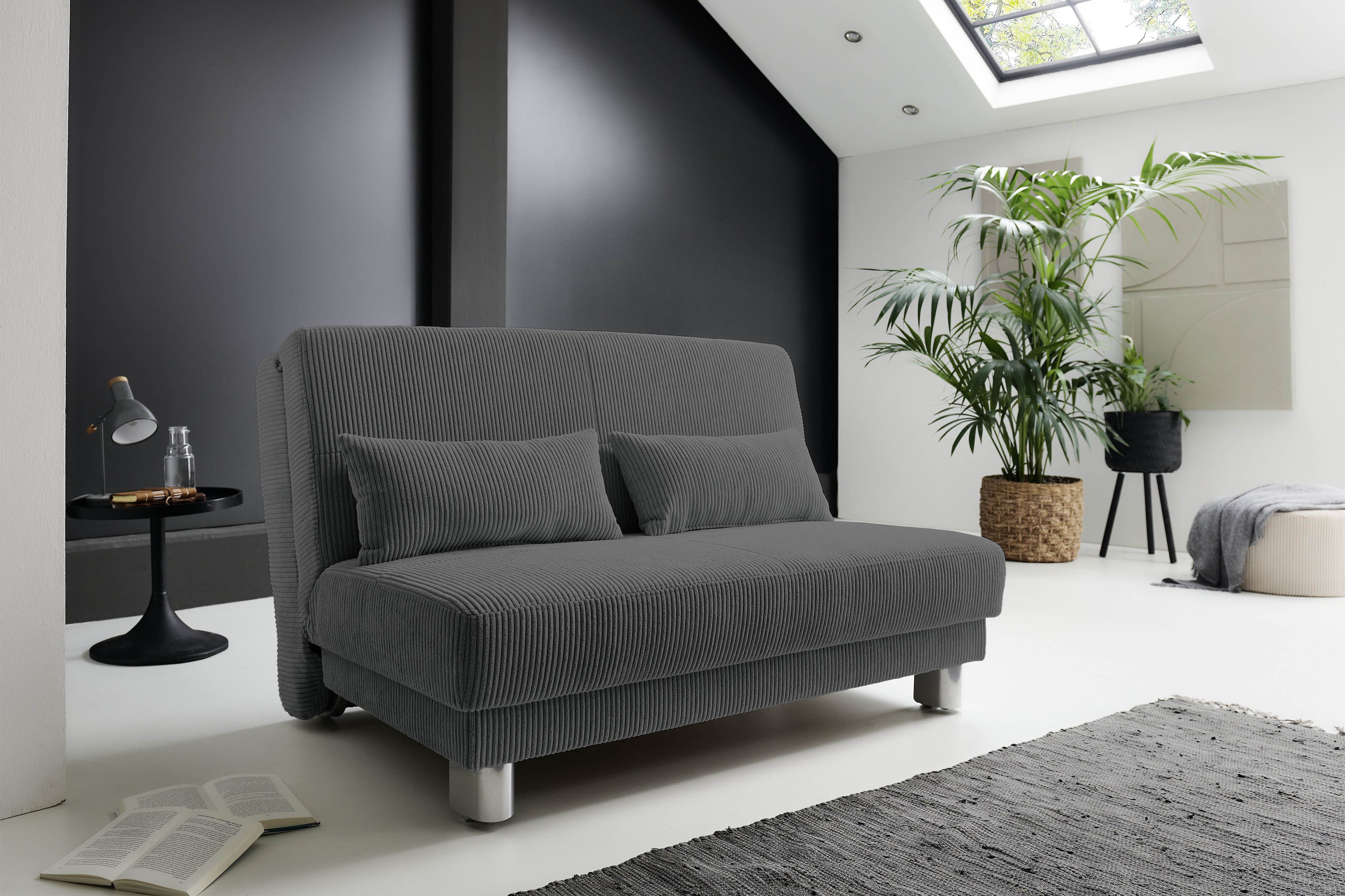 Bei diesem Schlafsofa von Sofa-Team bestimmen Sie, wann und wie Sie es sich gemütlich machen möchten - flexibel und platzsparend zugleich, werden Sie Gina ganz schnell in Ihr Herz schließen. Charakteristisch an diesem Modell sind die zarten Nähte auf dem Sitz und am Rücken, da sie Bewegung in die sonst klare Form des Faltsofas bringen. Für ein insgesamt angenehmes Sitz- und Liegegefühl sorgt die hochwertige Kaltschaum-Polsterung auf Federholzleisten in Verbindung mit den bereits im Angebot enthaltenen Nierenkissen. Doch das eigentliche Highlight dieses Sofas ist die Schlaffunktion: Durch kinderleichtes Ausklappen offenbart sich eine großzügige Liegefläche von ca. 140 x 195 cm, die als gelegentliche Übernachtungsmöglichkeit für Ihre Gäste zur Verfügung steht. Seine dezente Farbgebung ermöglicht es Ihnen, dieses Schlafsofa mit Ihrem persönlichen Einrichtungsgeschmack zu kombinieren. Freuen Sie sich mit Gina auf Momente der völligen Entspannung - Faltsofa Gina von Sofa-Team.
