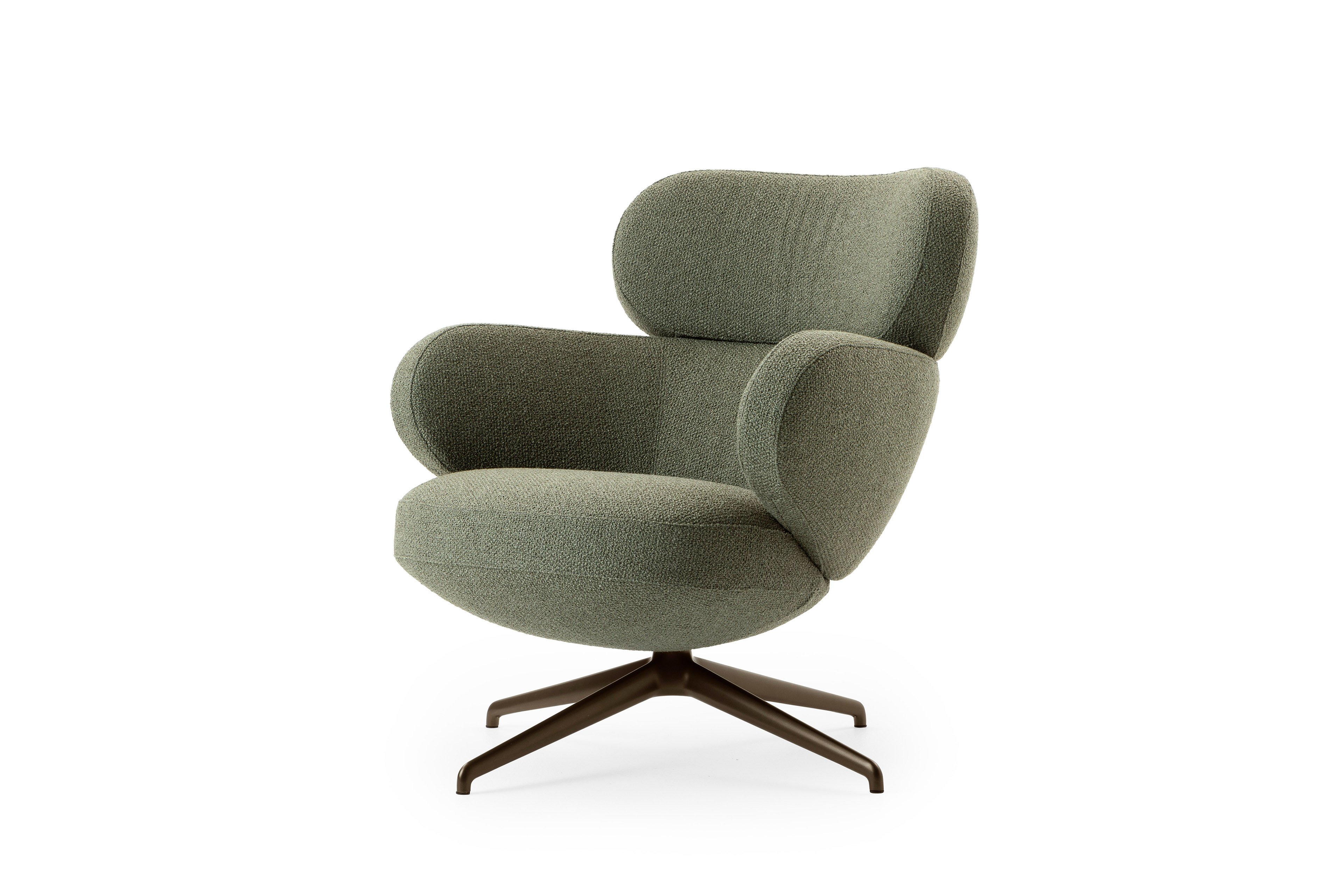 Mit seiner ausdrucksstarken Eleganz zieht der Pode Sessel Bibo alle Blicke auf sich und verwandelt jeden Raum in einen Ort des Ankommens sowie Wohlfühlens. Seine sanft geschwungenen, organischen Linien wirken wie eine stille Einladung, Platz zu nehmen, loszulassen und den Moment zu genießen. Der filigrane, vierstrahlige Metallfuß setzt dabei moderne, puristische Akzente und verleiht dem Design eine schwebende Leichtigkeit. Das Bezugskleid aus einem harmonisch wirkenden, grünen Bouclé unterstreicht den individuellen Charakter des Sessels und fügt sich mühelos in unterschiedlichste Wohnstile ein - zeitlos, hochwertig sowie voller Persönlichkeit. Ob als stilvolle Ergänzung zur bestehenden Garnitur, als Blickfang in der Leseecke oder als eleganter Ruhepol im großzügigen Büro: Der Pode Drehsessel überzeugt in jeder Rolle. Im Inneren verbirgt sich ein Versprechen auf höchsten Komfort. Die erstklassige Formschaumpolsterung, getragen von stabilen Stahlfedern, schenkt Ihnen wohltuende Unterstützung und lädt zu entspannten Stunden ein. Dank der integrierten 360°-Drehfunktion genießen Sie maximale Freiheit und behalten jederzeit den Überblick über Ihren Wohnraum. Mit dem optional erhältlichen Hocker finden auch müde Beine ihren wohlverdienten Platz zur Ruhe - für Entspannung, die man nicht nur spürt, sondern fühlt. Der Drehsessel Bibo aus dem Hause Pode - so freundschaftlich kann Design sein.