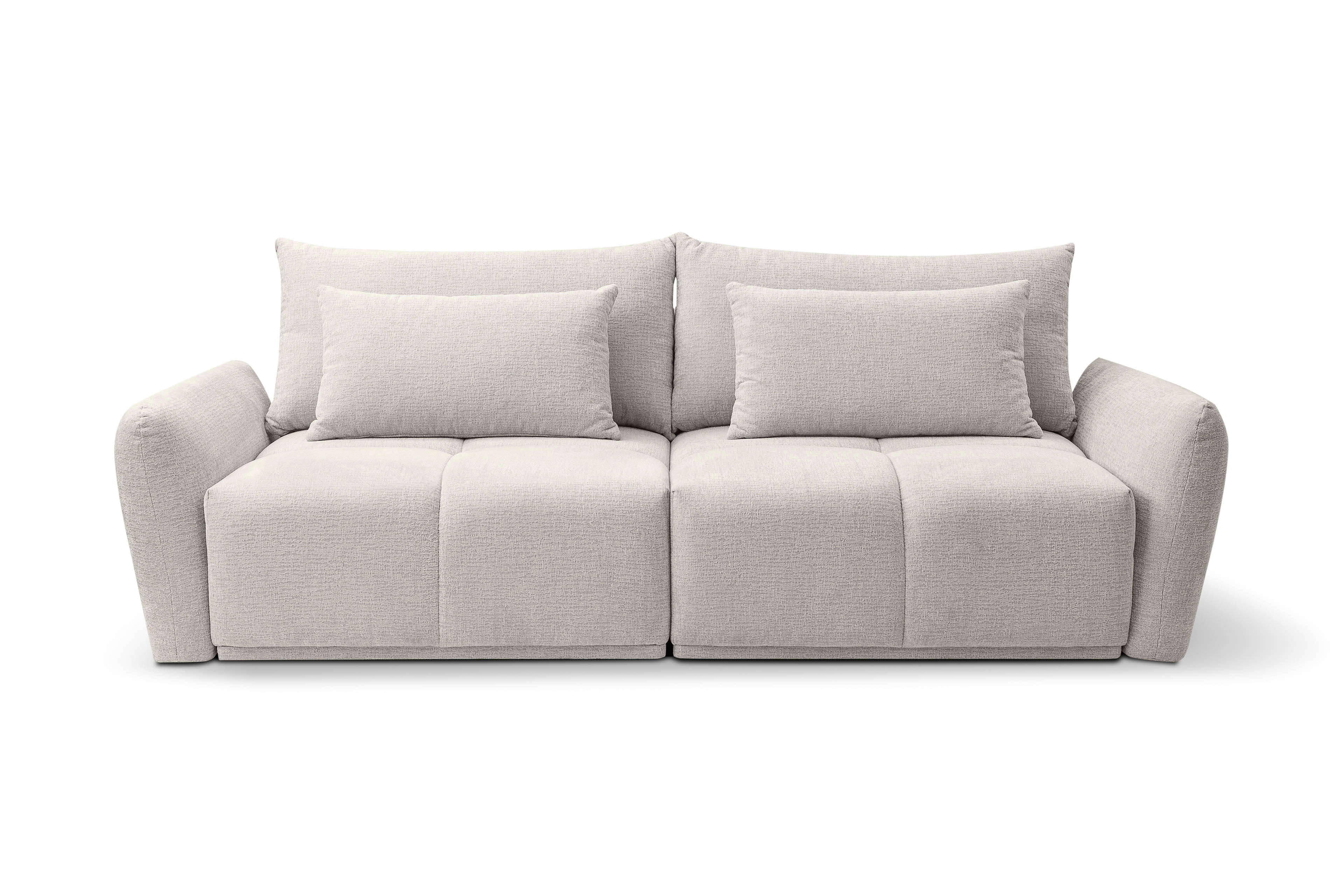 Ob als gemütliche Sitzgelegenheit für kuschelige Stunden oder als Schlafmöglichkeit für die Gäste - das Big Sofa Alia von BENIX Polstermöbel ist der ideale Begleiter für Tag und Nacht. Durch die sorgfältige Verarbeitung der Polsterung aus Schaumstoff auf einer Gurtunterfederung wird Ihnen ein angenehmer Sitz- sowie Liegekomfort garantiert und jeder Abend verwandelt sich in ein echtes Wohlfühl-Erlebnis. Mit einer Stellfläche von ca. 254 x 119 cm wird Ihnen ein Ort geschenkt zum Erholen und, um den Tag mit einer spannenden Serie, dazu einem Gläschen Wein sowie einem leckeren Abendessen, ausklingen zu lassen. Aber auch mit praktischer Funktionalität begeistert Alia, denn mit der Schlaffunktion lässt sich das Megasofa in ein Gästebett mit einer ca. 254 x 170 cm großen Liegefläche verwandeln, während im zweiteiligen, integrierten Bettkasten Decken und Kissen ihren Platz finden. Ihnen gefällt das Gewand aus einem beigefarbenen Chenille-Flachgewebe nicht oder dieses passt nicht zum Einrichtungsstil? Dank einer vielfältigen Auswahl an verschiedenen Bezügen sowie Farben eröffnet sich die Möglichkeit, diese Polstergarnitur an Ihr Wohnkonzept anzupassen. Verleihen Sie Ihrem Zuhause eine einladende Atmosphäre, welche zum Verweilen einlädt, und gönnen Sie sich entspannte Momente mit unserem stylishen BENIX Sofa.
