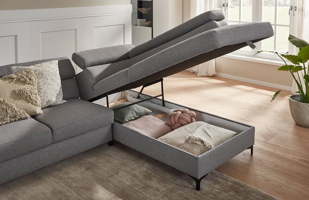 - Funktionen: Schlaffunktion - Liegefläche echt bezogen, Stauraum, Kopfteilverstellung