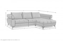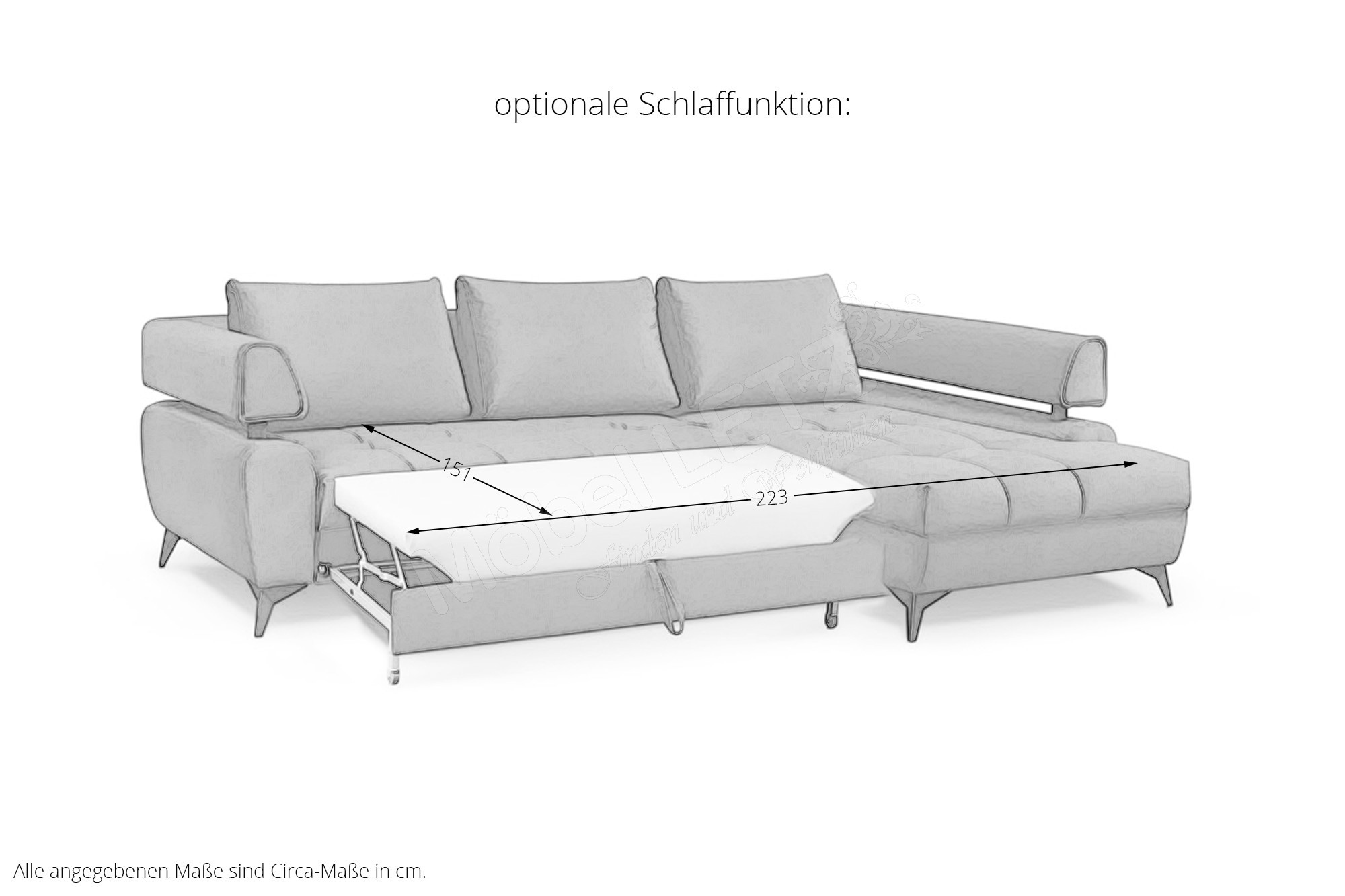 Der Hersteller BENIX Polstermöbel hat mit dem Ecksofa Paris-LE25 ein Möbelstück erschaffen, welches mit seiner schönen Formgebung und gut durchdachten Details jedes Zuhause bereichert. Mit einem Microfaser-Bezug in Grün sowie mit schwarzen Metallfüßen, welche für viel Bodenfreiheit sorgen, beeindruckt das Modell direkt beim ersten Anblick und fügt sich mit ihrem kräftigen Äußeren perfekt in verschiedene Wohnstile ein. Schnappen Sie sich doch mal wieder Ihr Lieblingsbuch, schalten Sie einen spannenden Film an oder laden Sie Ihre besten Freunde ein, um den neusten Klatsch und Tratsch auszutauschen, und genießen Sie zauberhafte Momente auf dem ca. 267 x 188 cm großen Polstersofa, welches Ihnen sowie Ihren Gästen mit einer Schaumstoffpolsterung auf einer Wellenunterfederung ein herrliches Sitzerlebnis schenkt. In den Zusatzoptionen finden Sie die Möglichkeit, die Ottomane mit einem aufklappbaren Bettkasten auszurüsten, welcher einen großzügigen Stauraum für Alltagsgegenstände bietet. Gleichzeitig ist der 2-Sitzer mit einer Schlaffunktion ausgestattet. Die Polsterecke stellt mit einer Liegefläche von ca. 223 x 151 cm ausreichend Wohlfühlplatz bereit, um eine erholsame Nacht zu genießen. Außerdem steht Ihnen noch ein passender Hocker zur Verfügung, welcher das Gesamtbild perfekt abrundet. Paris-LE25 von BENIX - eine stilvolle Ergänzung für jedes Wohnzimmer.