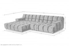 Ocean 7 aus dem Hause Bretz - ein echter Hingucker und ein himmlischer Platz, welcher mit seinen wellengleichen Rundungen sowie der interessanten Würfeltechnik ein stilvoller Mittelpunkt in jedem Wohnraum wird. Das stylishe Ecksofa mit Blocksitzausführung sticht sofort ins Auge und tritt nicht nur allein durch die üppigen Formen, das opulente Design sowie den schimmernden Bezug in den Vordergrund, sondern auch durch die meisterhafte Kassetten-Heftung, bei der jeder Einzug an mehreren Punkten einzeln von Hand in der Polsterung verankert wird, welche sich komplett über das ganze Sofa zieht und ihm so seinen hohen Wiedererkennungswert verschafft - man kann kaum an ihm vorbeigehen, ohne es einmal genauer zu betrachten und einmal Platz genommen zu haben. Mit einer stattlichen Stellfläche von ca. 196 x 330 cm sowie einer sagenhaften Sitztiefe von ca. 95 cm ist die Polsterecke groß genug, um einen ganz behutsam aufzufangen und zu jeder Zeit einen lauschigen Rückzugsort zu bieten. Mit der superbequemen Polsterung, die Ihren Körper sanft umschmeichelt, aufgebaut aus einem formangepassten Bonell-Federkern plus einem mehrschichtigen Polsteraufbau aus Premium-Kaltschäumen auf dicht schwingenden Nosagfedern, bietet das Modell einen herrlich weichen, einfach unbeschreiblichen Sitzkomfort - "Die wahrscheinlich komfortabelste Polstermöbel-Familie der Welt". Allein entspannen, zu zweit Aufregendes erleben, als Familie gemeinsam Spaß haben, mit Freunden wild diskutieren, sich mit Geschäftspartnern angenehm austauschen - das Modell verzaubert kleine wie größere Räumlichkeiten mit seinem Charme und eröffnet neue, spannende Welten mit unendlichen Sphären. Mit viel Liebe zum Detail, auserlesenen Materialien und einer außerordentlich charmanten Art passt sich das Sofa, in großen wie in kleinen Räumen, perfekt an, lässt sich mit einen 33 cm Planungsraster, einer atemberaubenden Bezugskollektion sowie ergänzenden Extras, wie einen Hocker, farbig passenden oder kontrastierenden Kissen, auf alle nur denkbare Weise kreieren und bleibt sich dabei selbst treu. Ocean 7 von Bretz - "ein Designsofa mit starkem Charakter".