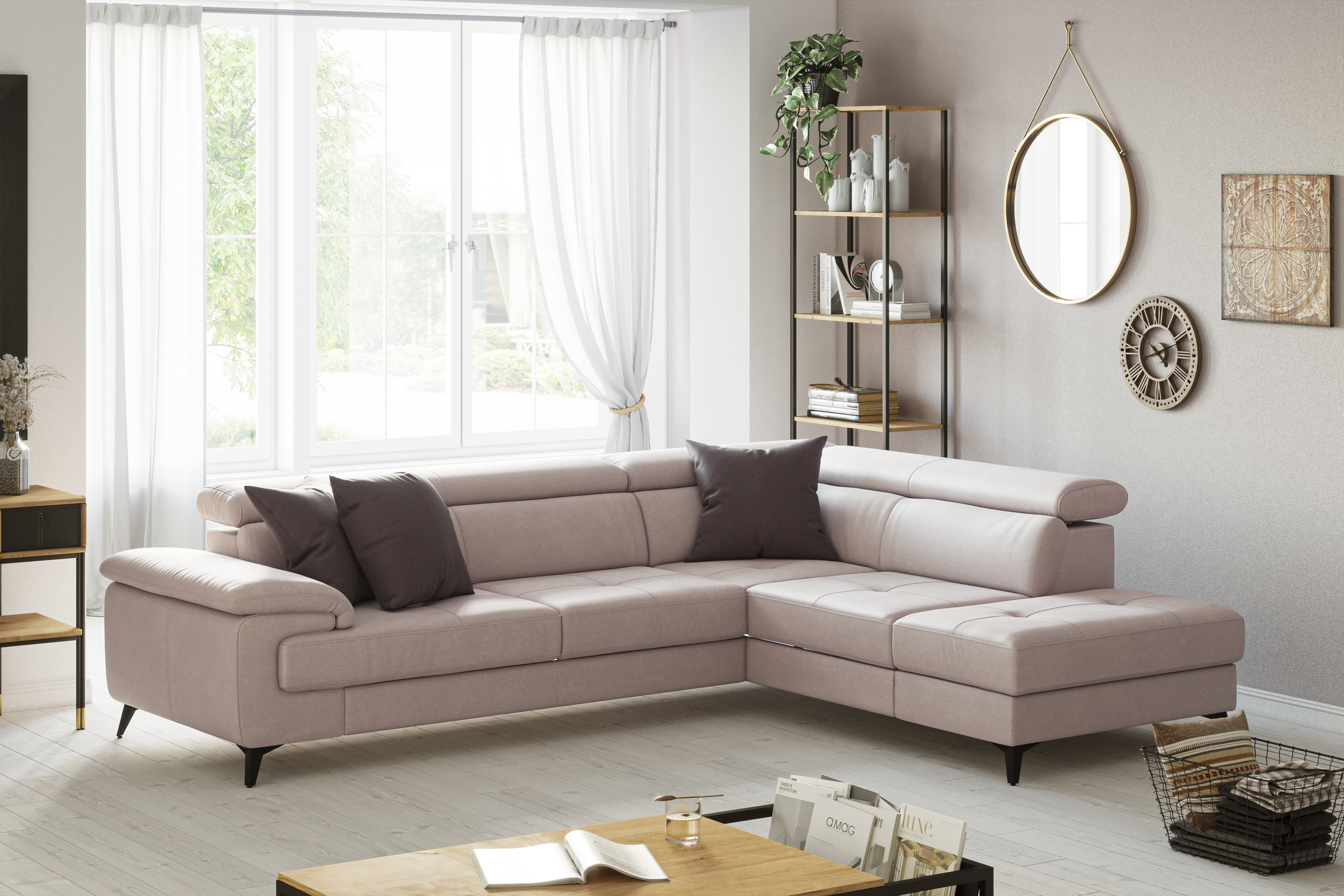 Das Ecksofa Astra-LE25 aus dem Hause Cotta Polstermöbel präsentiert sich in unserem Angebot in einer beigefarbenen Microfaser, welche mit den matt schwarzen Metallfüßen perfekt abgerundet wird und so Ihrem Zuhause einen modernen Touch verleiht. Die Garnitur setzt sich aus einem großzügigen 3-Sitzer sowie einer Ottomane, wo man auch mal die Beine hochlegen kann, zusammen und hat ein Gesamtstellmaß von ca. 286 x 236 cm. Nehmen Sie sich eine kleine Auszeit, verbringen Sie gemütliche Stunden mit dem Partner oder laden Sie Ihre besten Freunde ein und erleben mit ihnen zusammen einen geselligen Abend. Dank der Polsterung auf Nosagfedern, in Kombination mit den verstellbaren Kopfteile können Sie sich entspannt zurücklehnen und ein angenehmes Sitzgefühl genießen. Der Abend ist länger geworden und der Besuch bleibt über Nacht? Mit einer optional erhältlichen Schlaffunktion, die Sie zusätzlich hinzubuchen können, lässt sich im Handumdrehn eine ca. 203 x 124 cm große Liegefläche zaubern, sodass Ihre Übernachtungsgäste ausreichend Platz für einen erholsamen Schlaf geschenkt bekommen. Zusätzlich zu dieser Funktion wird die Eckgarnitur mit einem Stauraum ausgestattet - hier lassen sich notwendige Utensilien ordentlich und schnell griffbereit verstauen. Passen Sie die Polsterecke ganz nach Ihren Wünschen und Vorstellungen an, dies ist auch dank einer großen Auswahl an verschiedenen Bezügen sowie Farben möglich. Astra-LE25 vom Hersteller Cotta