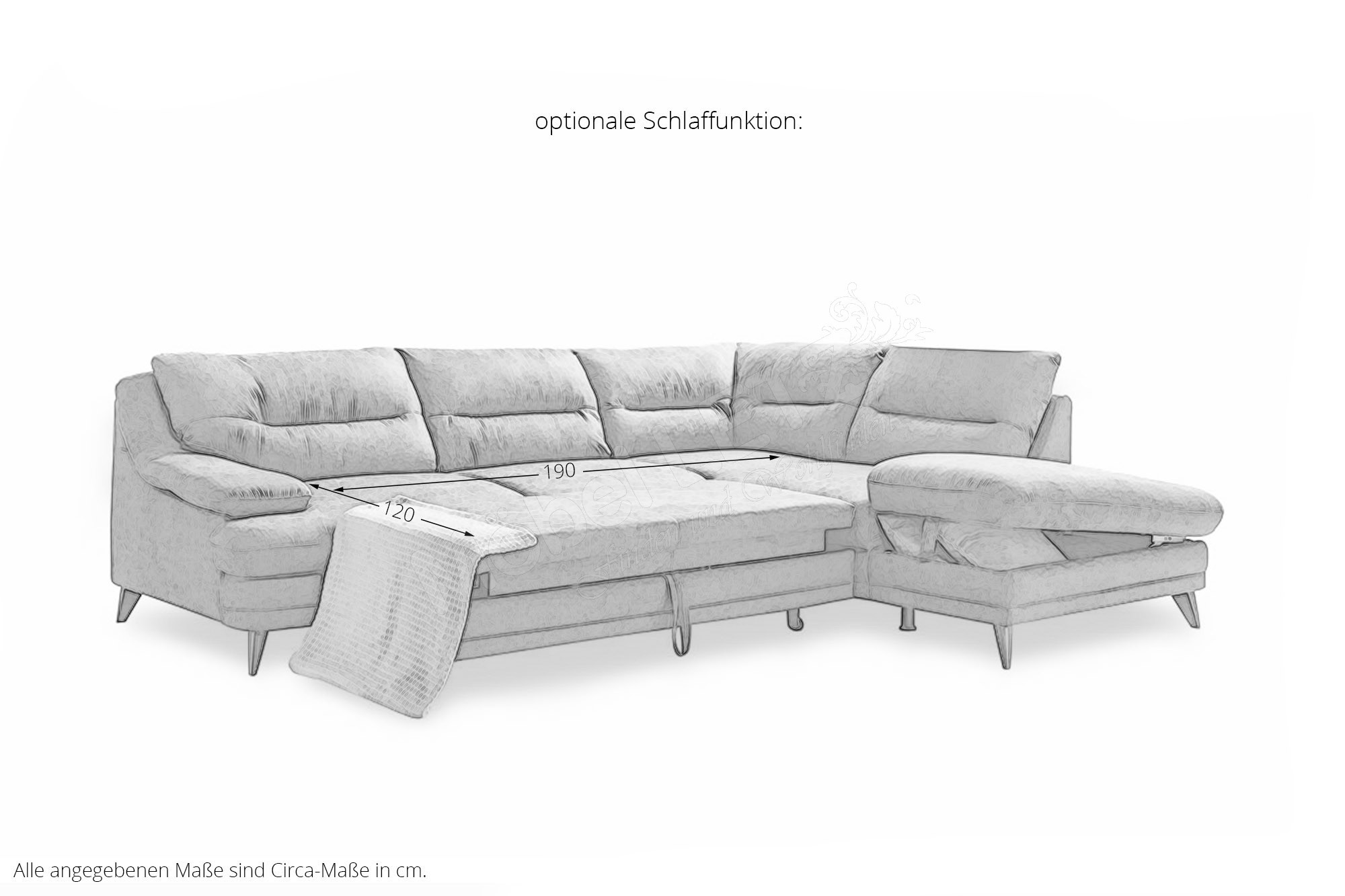 2,5-Sitzer mit Schlaffunktion und Ottomane mit Bettkasten, Liegefläche ca. 191 x 120 cm, mit hochwertigem Matratzendrell bezogen