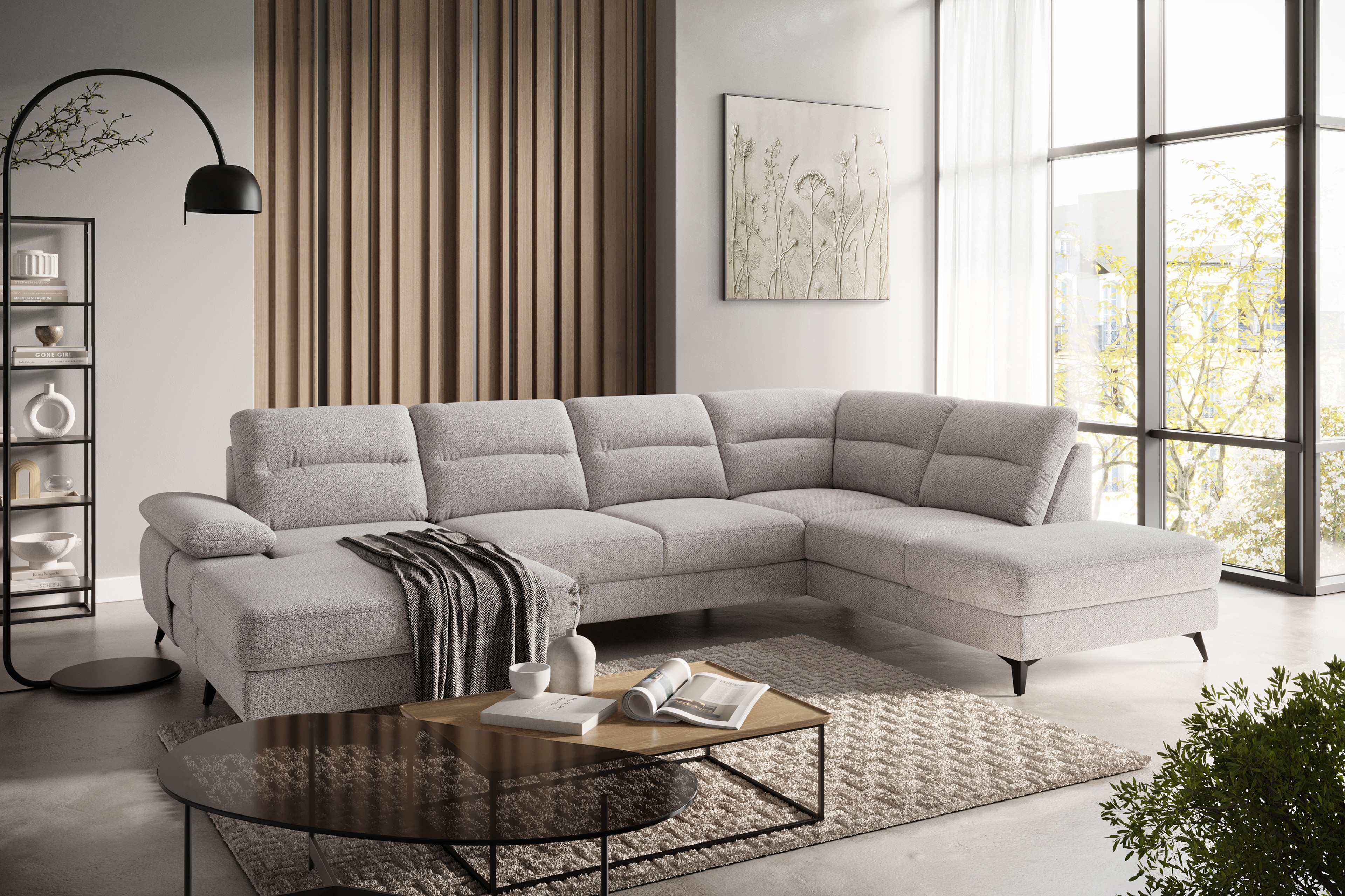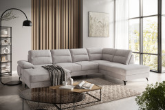 Sie sind auf der Suche nach einem neuen Familiensofa? Dann ist das Modell Flavia des Herstellers Cotta Polstermöbel die perfekte Wahl. Diese Wohnlandschaft bietet mit einem Stellmaß von ca. 168 x 316 x 214 cm, bestehend aus einer Recamiere, einem 2-Sitzer Zwischenelement und einer Ottomane, ausreichend Sitz- sowie Liegefläche. In unserem Angebot zeigt sich dieses moderne Sofa in einem hellen, beigen Chenille-Flachgewebe, welches mit den formschön gestalteten, schwarzen Metallfüßen stilvoll ergänzt wird. Qualität die man fühlt - die Polsterung mit Nosagfederung lädt zum Entspannen ein und schenkt Ihnen einen angenehmen Sitzkomfort. Sie haben Besuch, welcher auch mal über Nacht bleiben möchte oder Sie brauchen mehr Platz um kuschelige Momente mit der Familie zu genießen? Mit einer optional erhältlichen Schlaffunktion können Sie die Polstergarnitur im Handumdrehen in eine bequeme Schlafgelegenheit verwandeln. Zusätzlich zu dieser Auswahl erhalten Sie praktischen Stauraum, die genügend Platz bieten um Kissen, Decken oder andere Wohnaccessoires zu verstauen. Weiterhin haben Sie die Möglichkeit, aus diversen Bezugs- sowie Farbvarianten zu wählen und diese Garnitur so zu gestalten, wie es am besten zu Ihrer Einrichtung passt. Erleben Sie gemütliche Film- oder spaßige Spieleabende mit Ihren Liebsten und machen Sie jeden Moment zu einem besonderen Erlebnis mit dem Polstersofa Flavia von Cotta.