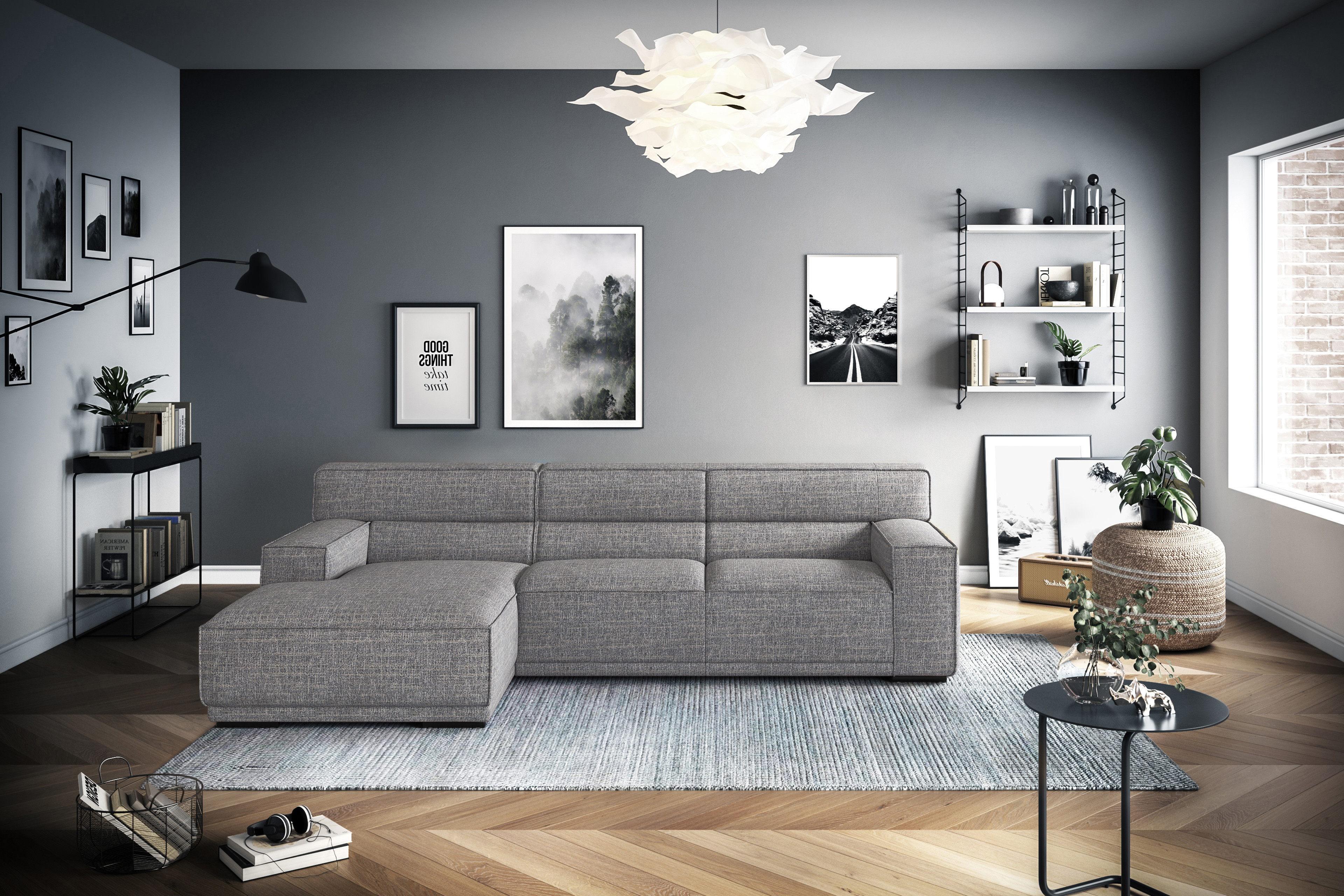 Sie sind auf der Suche nach einer neuen Couch, welche nicht nur ausreichend Platz schenkt, sondern sich auch perfekt in Ihr Wohnkonzept integrieren lässt? Mit einem Stellmaß von etwa 170 x 280 cm und dem zauberhaften Bezugskleid aus einem dunkelgrauen Chenille-Flachgewebe, setzt sich Kubo-LE25 aus dem Hause Cotta Polstermöbel gekonnt in Szene und überzeugt direkt beim ersten Anblick. Dieses Ecksofa setzt sich aus einer Recamiere sowie einem 3-Sitzer zusammen und wird dank seiner großzügigen Sitzfläche und der Schaumstoffpolsterung, welche auf einer Nosagunterfederung ruht, zu einer wahren Wohlfühloase. Die schwarzen Metallfüße vervollständigen das Gesamtbild und verleihen der Polstergarnitur einen modernen Kontrast. Lassen Sie den ereignisreichen Tag mit einem spannenden Buch und einem frisch gebrühten Früchtetee entspannt ausklingen oder laden Sie Ihre besten Freunde ein, um gemeinsam einen lustigen Spieleabend mit leckeren Snacks sowie kühlen Getränken zu erleben. Sie bestimmen den Look - mit unserer vielfältigen Bezugsübersicht können Sie Ihr Traumsofa ganz nach Ihrem Geschmack gestalten, von sanften Tönen bis hin zu kräftigen Farbakzenten. Kubo-LE25 von Cotta - der perfekte Begleiter für jeden Tag.