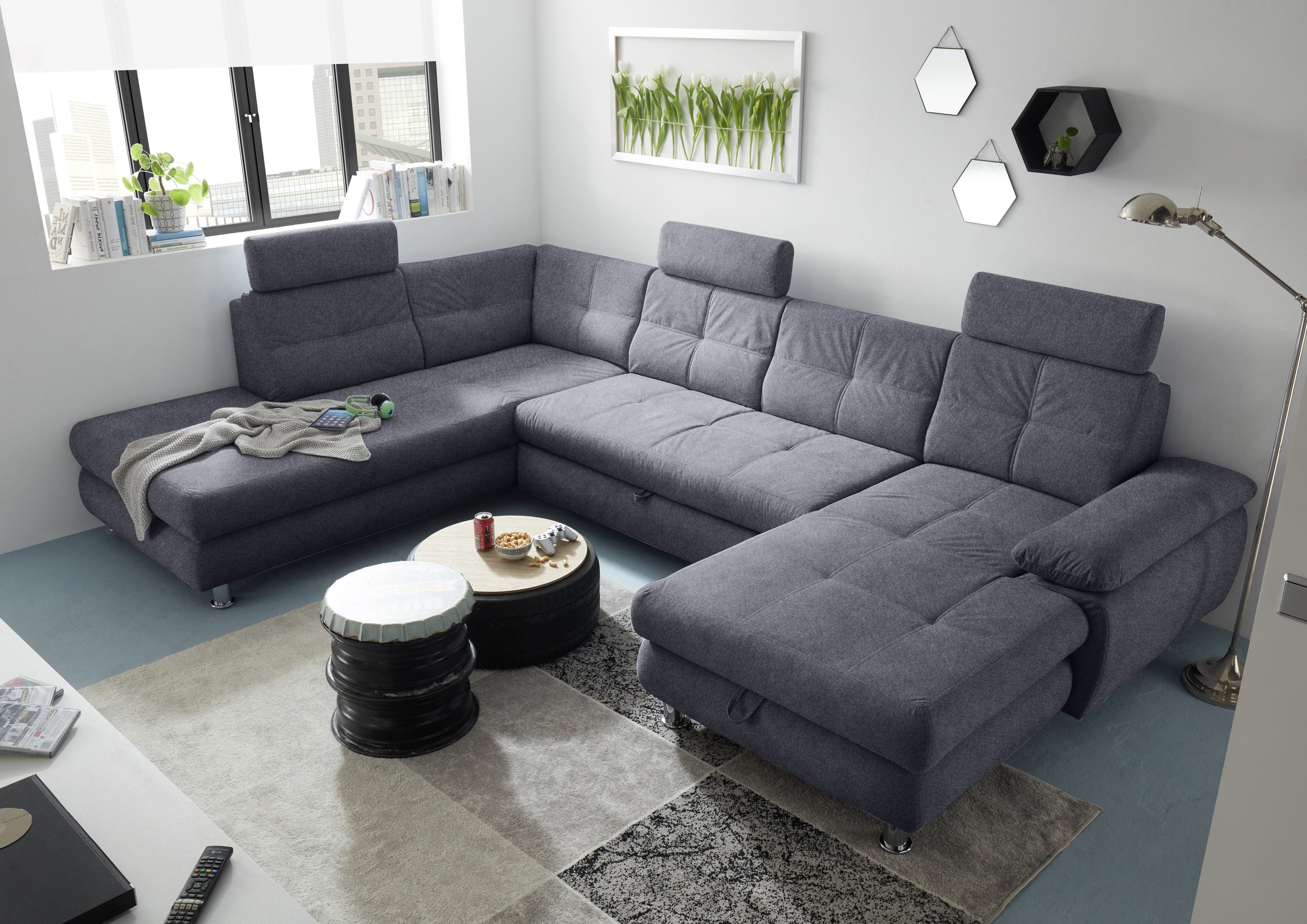 Mit einer Menge Gemütlichkeit im Gepäck präsentiert sich das Modell Alba, eine Wohnlandschaft des Polstermöbelherstellers ED-Lifestyle. Hier wurde viel Wert auf Design und Funktionalität gelegt: die ca. 233 x 349 x 177 cm große Garnitur ist in einem wunderschönen Chenille-Flachgewebe in Anthrazit gekleidet, welcher mit einer besonders strapazierfähigen Eigenschaft überzeugt, die gerade in Haushalten mit Kindern eine entscheidende Rolle spielt, wo vielleicht das eine oder andere Trinkglas ausversehen den Weg auf das Sofa findet. Gepolstert mit Schaumstoff, hat die Sofalandschaft einige Komfortfunktionen in petto, die Ihnen das Entspannen nach dem Arbeitstag wesentlich erleichtern. So ist die Sitzgelegenheit mit einer Armteilverstellung, drei Kopfstützen, einem Bettkasten sowie einer Schlaffunktion ausgestattet. Letztere ermöglicht Ihnen, auch spontan angekündigten Übernachtungsgästen ein himmlisches Nachtlager mit einer bequemen Liegefläche von etwa 275 x 127 cm anzubieten. Die dazu benötigten Decken sowie Kissen holen Sie bei Gebrauch kurzerhand aus dem Stauraumfach in der Recamiere und verwahren diese am nächsten Morgen wieder sorgfältig darin. Haben Sie Optik und Funktionsumfang überzeugt? Dann lassen Sie das Polstersofa ganz bald bei sich einziehen und erweitern Sie Ihren Wohnraum stilvoll - um Alba aus dem Hause ED-Lifestyle.