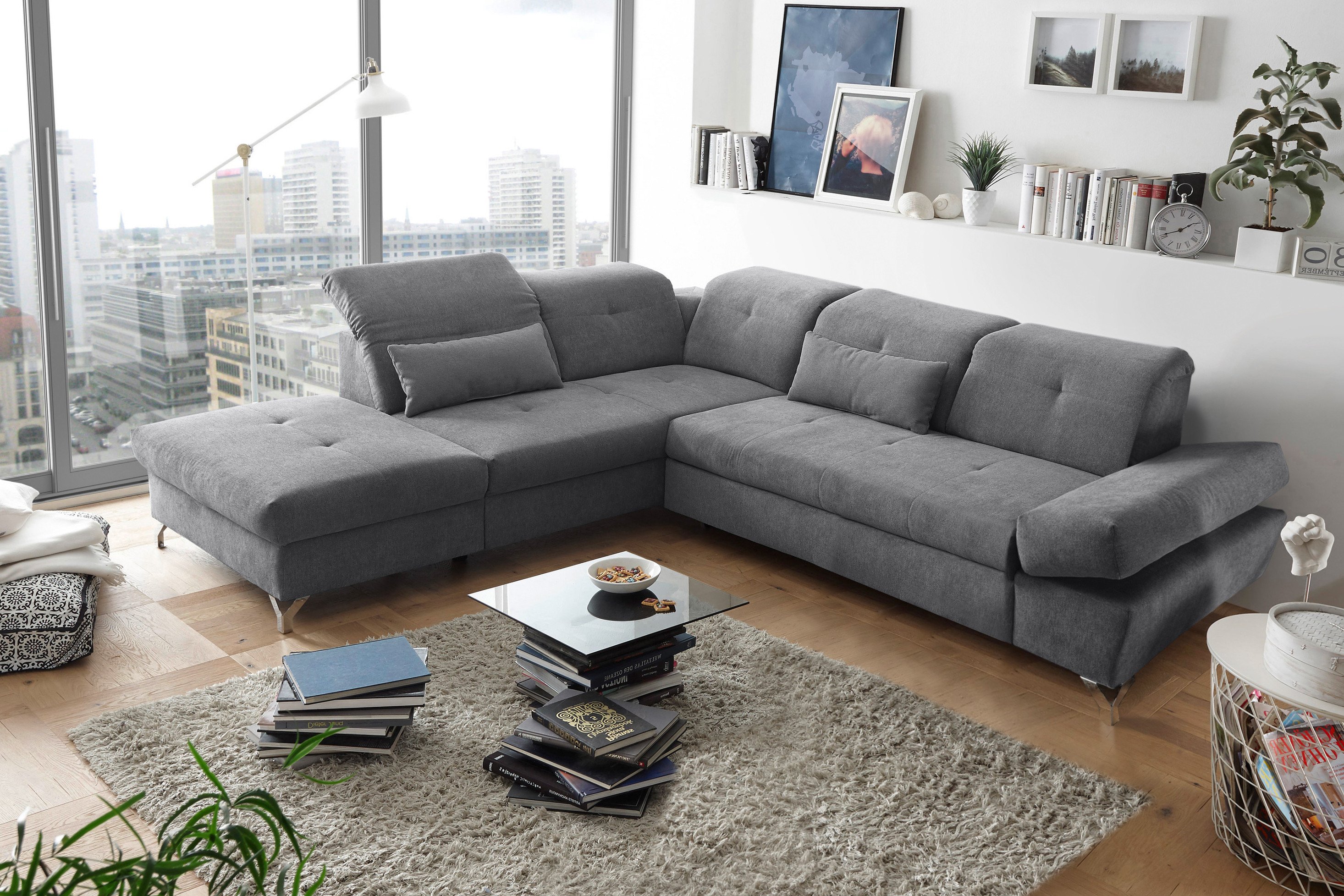 Im bezaubernden Flockstoff-Bezug in Dunkelgrau überzeugt das Modell Melfi aus dem Hause ED-Lifestyle auf den ersten Blick und lädt zum Wohlfühlen wie auch zum Abschalten ein. Bestehend aus einer Ottomane sowie einem 2-Sitzer, die gemeinsam eine komfortable Größe von ca. 245 x 275 cm ausmachen, versprüht die Garnitur dank schicker Metallfüße modernen Charme in Ihren heimischen Räumlichkeiten. Ein echt bezogener Rücken lässt Ihnen freie Handhabe, wo das Sofa letztendlich seine Wirkungsstätte findet - sei es als intelligenter Raumtrenner zwischen dem Wohn- und Essbereich oder ganz klassisch vor die Wohnzimmerwand gestellt. In puncto Komfort lässt die Eckcouch keine Wünsche offen: Das Modell verfügt standardmäßig über eine Kopfteil- sowie Armteilverstellung, welche Ihnen ein bequemes An- und Ablegen ihres Kopfes wie auch Ihrer Arme garantiert. Eine hochwertige Polsterung aus Schaumstoff, welcher auf einer Nosagunterfederung ruht, verleiht dem Modell eine mittlere Sitzfestigkeit und komplettiert somit das angenehme Anlehngefühl. Egal welche Pläne Sie für das Wochenende haben - ein geselliger Kaffeeklatsch mit der besten Freundin, ein Serienmarathon in trauter Zweisamkeit oder eine ausgelassene Party, dank Melfi findet wirklich jeder einen Platz zum Relaxen. Ferner verfügt das Ecksofa über eine Schlaffunktion, mit dieser zaubern Sie für eventuelle Übernachtungsgäste eine Schlafmöglichkeit mit einer großartigen Liegefläche von etwa 240 x 121 cm. Auch spiegelverkehrt, in anderen Zusammenstellungen sowie Farben lieferbar - Ihre neue Traumgarnitur Melfi von ED-Lifestyle.