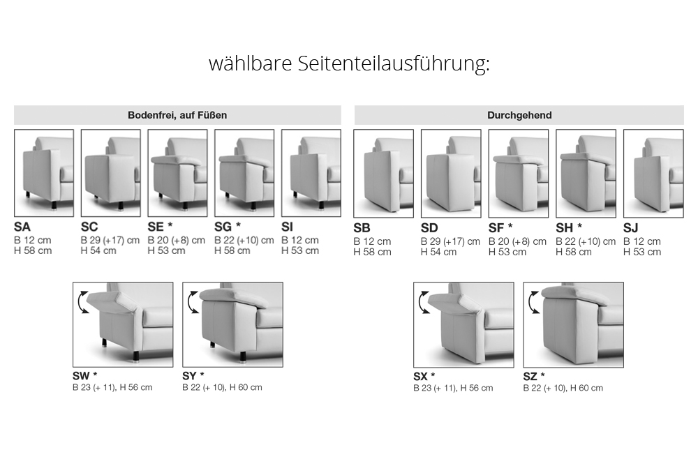 Die Verarbeitung von Zier-, Kapp- oder Doppelnähten kann in der Stoff- oder Lederausführung unterschiedlich ausfallen. Es besteht die Möglichkeit, dass bei der Stoffausführung die Nähte entfallen bzw. durch einfache Nähte ersetzt werden.