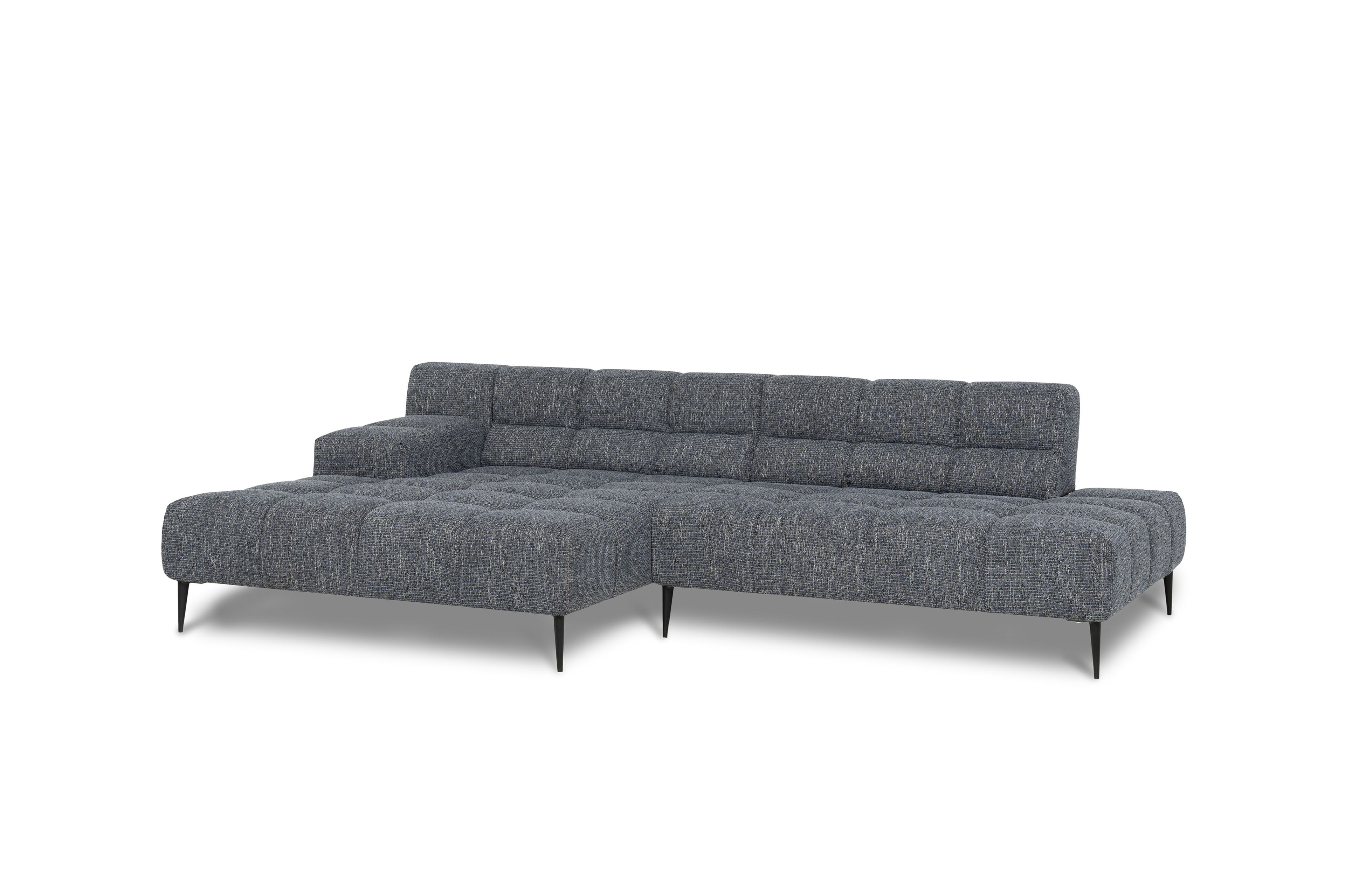 Sie wünschen sich eine Polstergarnitur, die modernes Design, hohen Sitzkomfort sowie großzügigen Platz vereint? Dann treffen Sie mit der designwerk Eckcouch Liam genau die richtige Wahl. Dieses stilvolle Sitzmöbel präsentiert sich in einer L-Form mit einer Recamiere und einem 2-Sitzer mit Abschlussteil - perfekt für entspannte Stunden mit Familie und Freunden. Mit einer Gesamtbreite von ca. 169 x 286 cm bietet die Garnitur reichlich Platz, um zur Ruhe zu kommen oder gesellige Abende zu genießen. Dank der hochwertigen Kaltschaumpolsterung auf Nosag-Stahlwellenfedern sitzt es sich jederzeit angenehm weich und stützend zugleich. Der Rücken ist ebenfalls mit Kaltschaum gepolstert, was für ein dauerhaft komfortables Sitzgefühl sorgt. Die manuelle Rückenverstellung im 2-Sitzer mit Abschlussteil bietet ein spürbares Plus an Komfort: Ob gemütlich zurückgelehnt beim Filmabend oder aufrecht beim Gespräch - Sie bestimmen selbst, wie Sie sitzen möchten. Diese Flexibilität macht das Ecksofa zu einem echten Lieblingsplatz in jeder Lebenslage. Die Kombination aus klaren Linien, modernen Proportionen und einem eleganten Bezug aus Flachgewebe in dunkelgrauer Variante verleiht Ihrem Wohnzimmer eine zeitgemäße, behagliche Atmosphäre. Schwarze Metallfüße mit einer Höhe von ca. 17 cm runden das edle Erscheinungsbild gekonnt ab. Auf Wunsch lässt sich die Garnitur durch einen passenden Hocker ergänzen. Er fügt sich harmonisch ins Gesamtbild ein und bietet zusätzliche Bequemlichkeit - als Fußablage, Sitzgelegenheit oder kleine Ablagefläche. Liam von designwerk - ein Stück Wohnkultur, die Sie jeden Tag aufs Neue genießen werden.