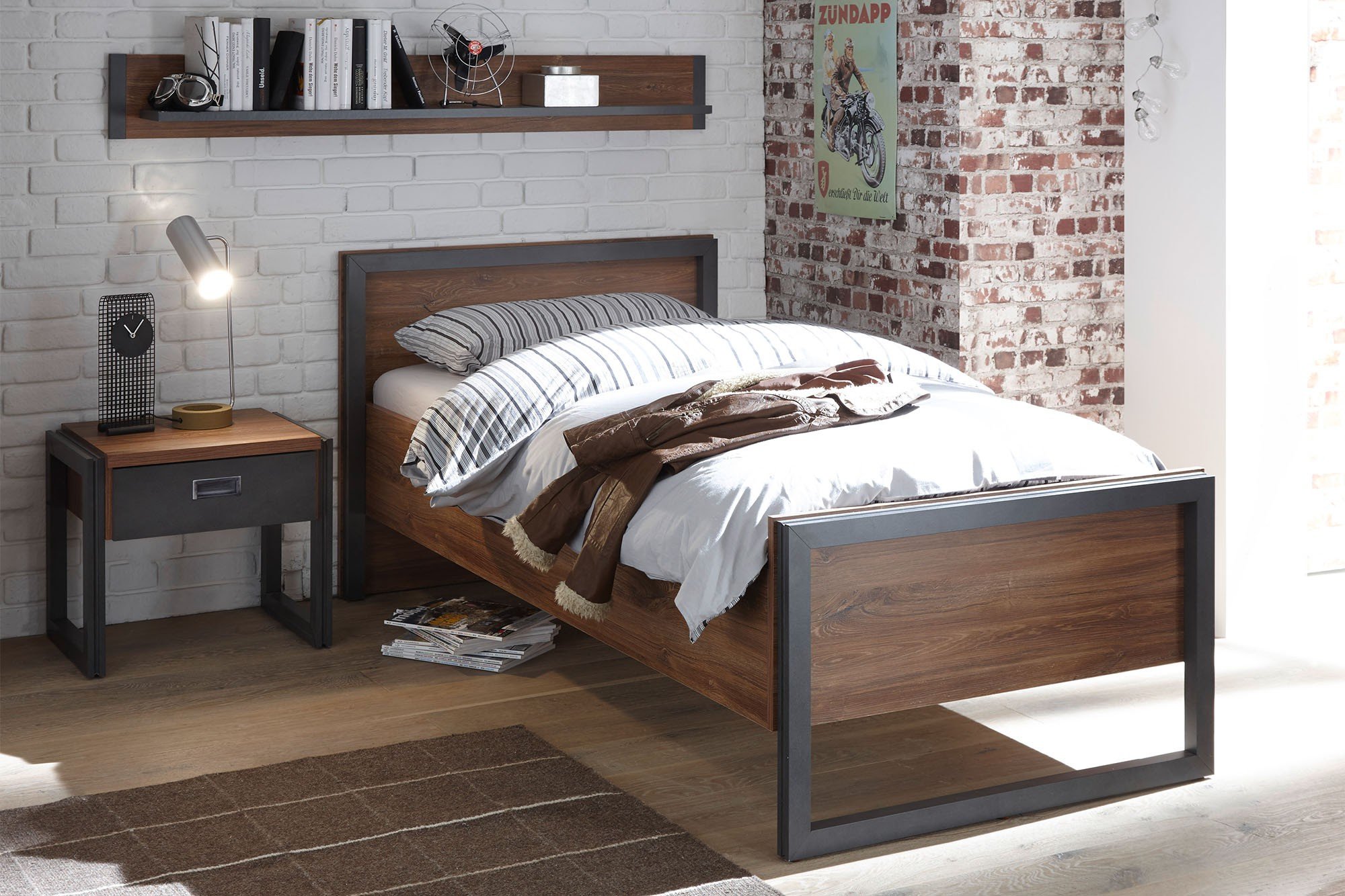 Machen Sie es sich gemütlich in diesem Bett aus dem Hause Kollektion Letz. Das Modell mit dem Namen Detroit, welches Sie hier in der Variante mit einer Liegefläche von 90 x 200 cm sehen, beeindruckt mit seinem frischen und modernen Design. Die Kombination aus Holz- und Metalloptik in dunklen braunen und anthrazitfarbenen Tönen findet sich nicht nur im Bettgestell selbst, sondern auch bei der dazugehörigen Nachtkonsole sowie an den weiteren Möbeln aus derselben Kollektion wieder und lehnt sich an den angesagten „Industrial Style“ an. Bestellen können Sie das Bett je nach Ihren Vorstellungen in drei verschiedenen Größen, neben der hier gezeigten Ausführung sind ebenfalls Breiten von 140 und 180 cm erhältlich. Um Ihren Schlafplatz funktionell abzurunden können Sie die passende Nachtkonsole auf Wunsch natürlich gleich mit bestellen, sodass Sie neben dem Bett eine zusätzliche Ablagemöglichkeit sowie ein Schubfach für verschiedene kleinere Dinge erhalten. Möbel von Kollektion Letz - zum Wohlfühlen.