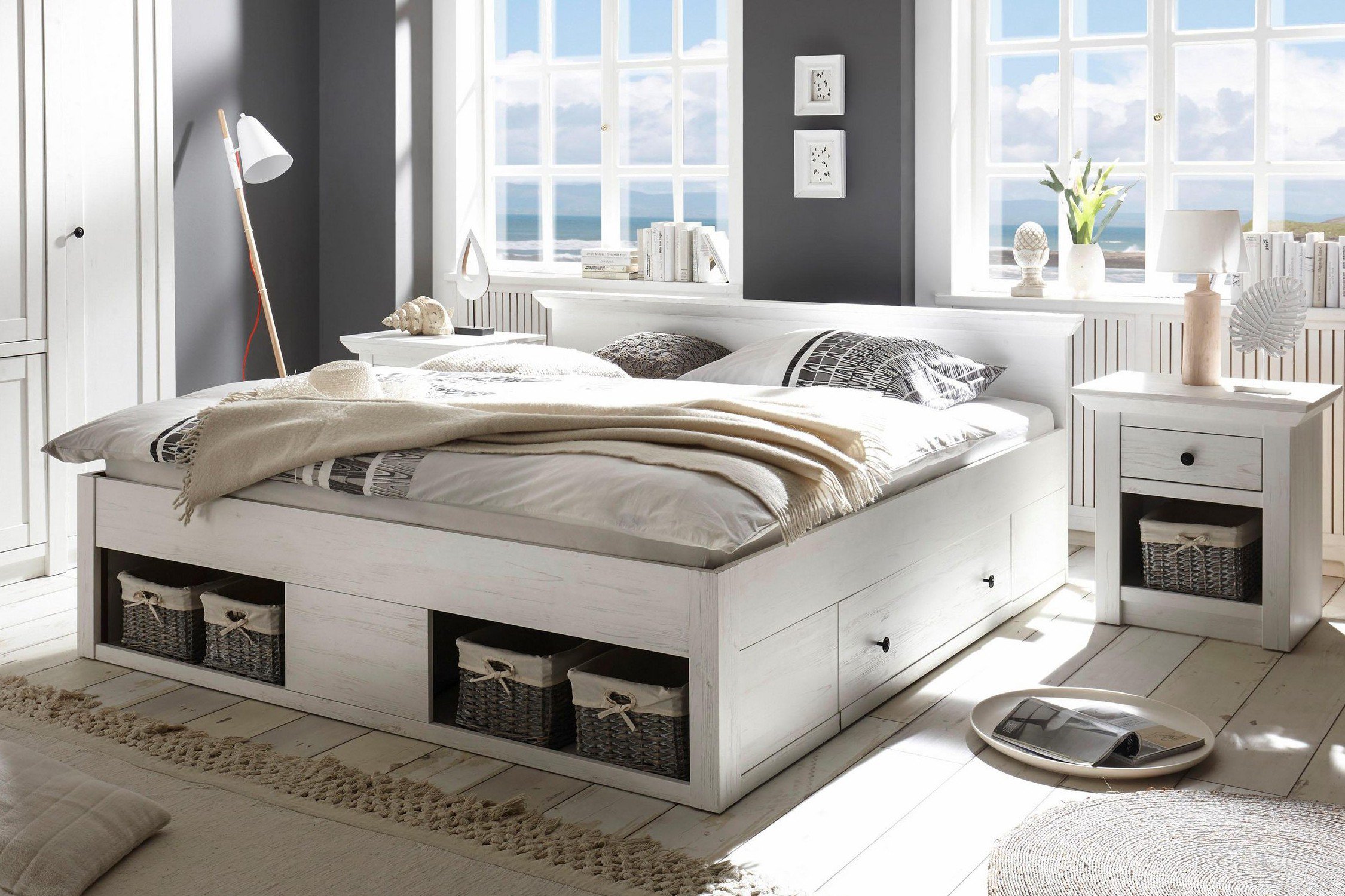 Doppelbett von Kollektion Letz - Modell Westerland - Pinie weiß mit Stauraum Kollektion Letz - stilvoller Cottage Style