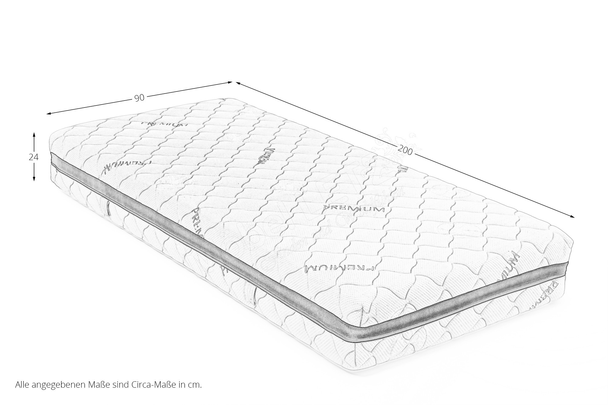 - 1 x 7-Zonen-Tonnen-Taschen-Federkern-Matratze, ca. BHT: 90/24/200 cm