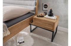 Reduziert, authentisch und stilvoll, so präsentiert sich diese Nachtkonsole von GK Möbelvertrieb. Die Serie BE-0828 verfügt über eine feine Auswahl von smarten Beimöbeln, die sich immer als perfekter Begleiter Ihres Bettes eignen. Eine Mischung aus geöltem Wildeichenholz und einem dunklen Metallgestell macht die hier vorgestellte Nachtkonsole zum Blickfang. Versehen mit einer einzigartigen Maserung strahlt der Nachttisch Wärme und Harmonie aus und eignet sich als kleiner, bettnaher Ordnungshelfer. Ein Schubkasten sowie eine breite und schmale Ablagefläche bieten immer einen Platz für Ihre Nachtlektüre, Ihre Brille oder auch ein Glas Wasser. Mit der Tip-On Funktion genügt ein leichter Druck, um die Schublade mühelos zu öffnen. Dies unterstützt zudem die grifflose und minimalistische Optik des Möbelstücks. BE-0828 von GK Möbelvertrieb – von der Natur inspiriert.