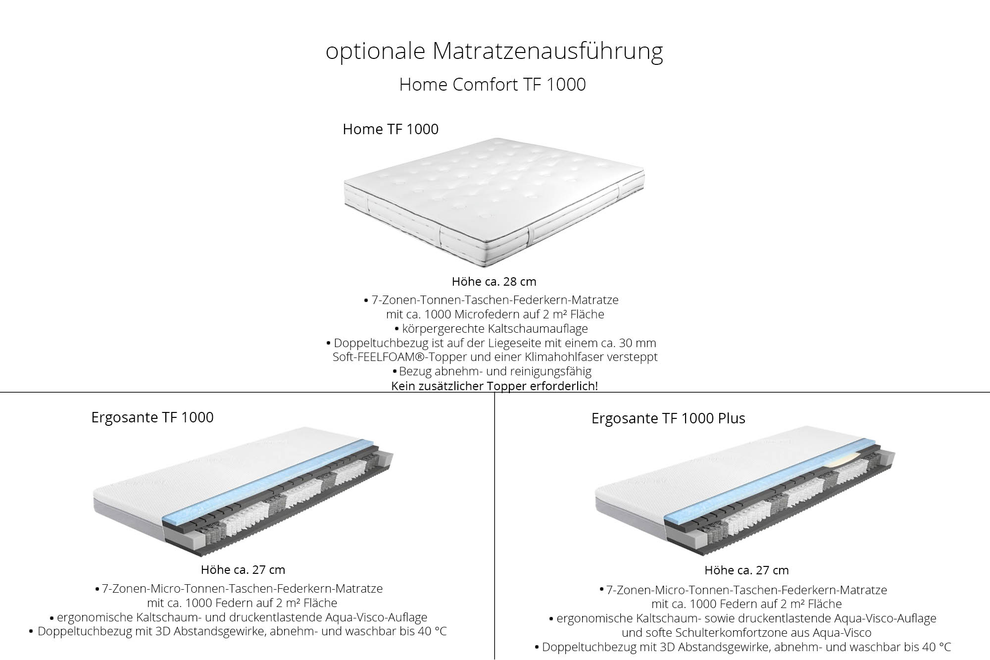 Home TF 1000 - 7-Zonen-Tonnen-Taschen-Federkern-Matratze mit Soft-Feelfoam®-Topper (ca. 1000 Federn auf 2 m²), Doppeltuchbezug, Höhe ca. 28 cm