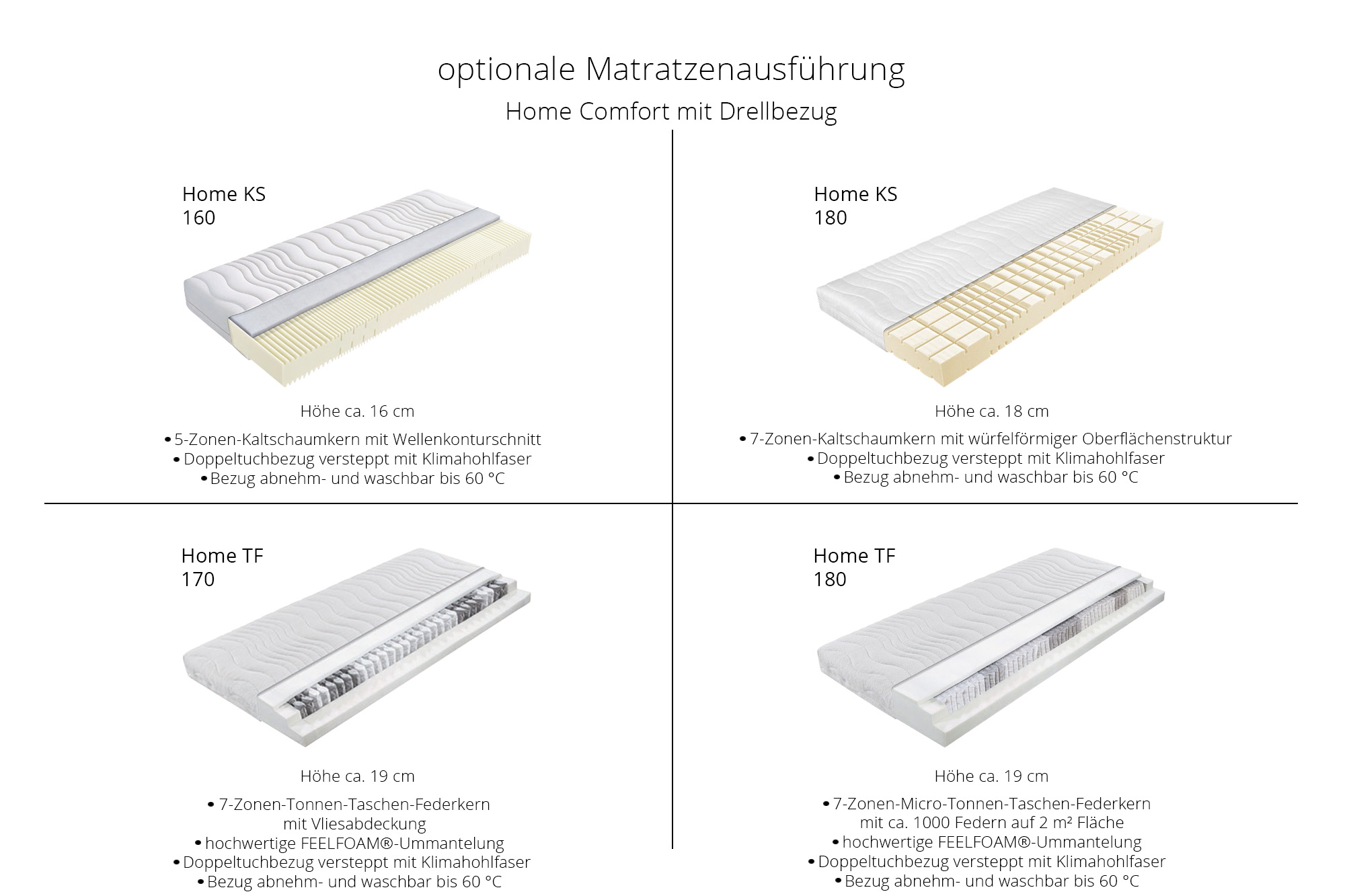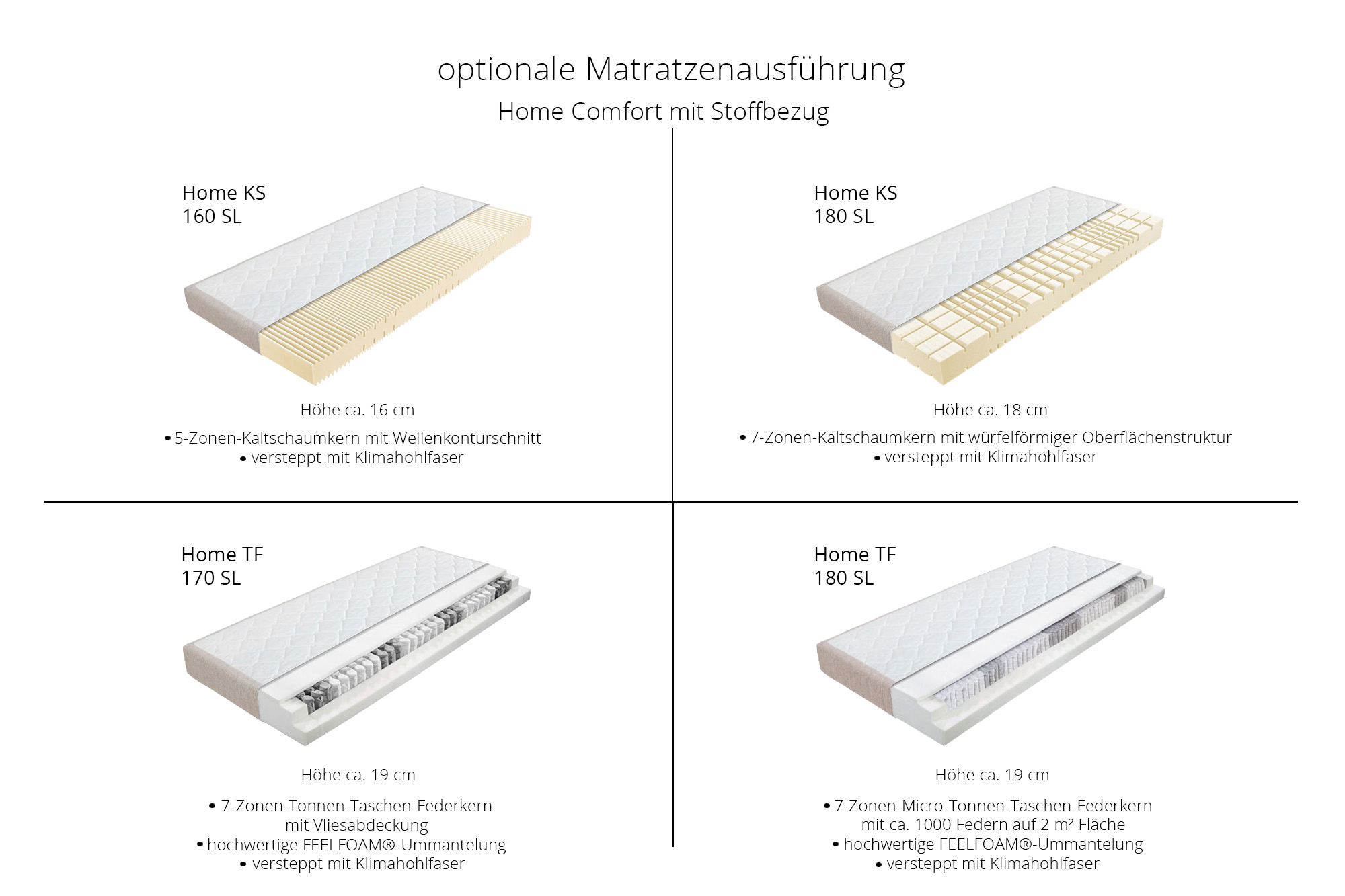 Home TF 170 - 7-Zonen-Tonnen-Taschen-Federkern-Matratze mit FEELFOAM®-Ummantelung, Doppeltuchbezug, Höhe ca. 19 cm