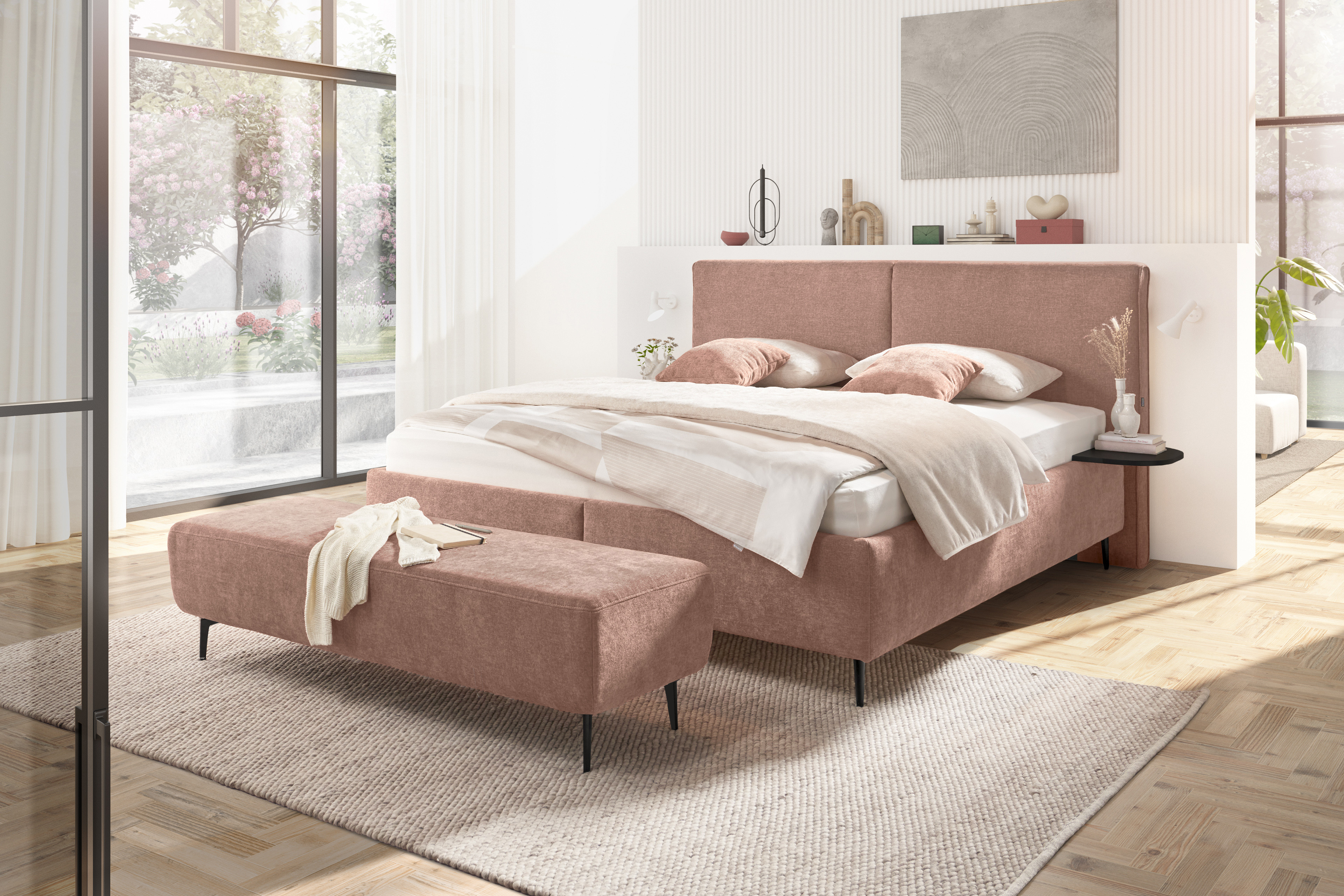 Grau und regnerisch war gestern – heute ist der Tag, an dem Sie Farbe in Ihr Leben bringen! Stellen Sie sich vor, wie Sie mit einem strahlenden Lächeln aufwachen und den Tag in vollen Zügen genießen. Jeder Moment birgt das Potenzial für purer Glückseligkeit und Wohlbefinden. Tauchen Sie ein in die verführerische Welt des Polsterbettes Bari von Musterring. Hüllen Sie Ihre Nächte in einen stilvollen, rosafarbenen Webstoffbezug, der nicht nur das Auge erfreut, sondern auch die Seele streichelt. Gönnen Sie sich erholsamen Schlaf auf einem komfortablen Unterbau, der mit einem großzügigen Bettkasten überzeugt und bereits mit einem hochwertigen Lattenrahmen ausgestattet ist. Um Ihr Schlaferlebnis perfekt abzurunden, können Sie optional eine Matratze wählen, die zusätzlichen Komfort und Unterstützung bietet. Erleben Sie, wie Funktionalität und Gemütlichkeit harmonisch miteinander verschmelzen. Das kissenförmige Kopfteil verleiht Ihrem Schlafzimmer eine elegante Note – eine harmonische Verbindung von Stil und Komfort. Lehnen Sie sich zurück, lassen Sie die Gedanken schweifen und genießen Sie Ihr Frühstück im Bett oder die Spannung eines fesselnden Buches am Abend. Doch das ist erst der Anfang: Individualisieren Sie Ihr Polsterbett ganz nach Ihrem persönlichen Geschmack. Wählen Sie aus einer schier unendlichen Palette von Farben und Bezugsstoffen, verschiedenen Kopfteil- sowie Fußausführungen, um Ihre persönliche Wohlfühloase zu kreieren. Legen Sie sich hin, schließen Sie die Augen und lassen Sie sich in die Welt der sinnlichen Träume entführen – mit einem Polsterbett von Musterring wird jede Nacht zu einem Fest der Sinne.