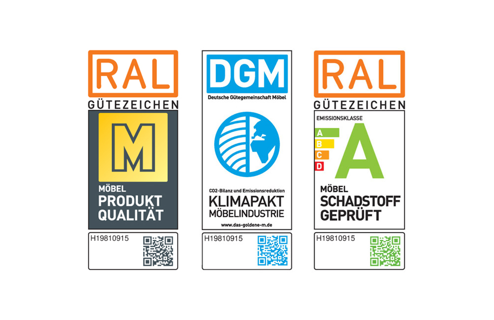- Bettrahmen: kubisch mit Schichtholzrahmen, Innenflächen anthrazit, variable Liegehöhe von ca. 7 cm durch seitliche Beschläge