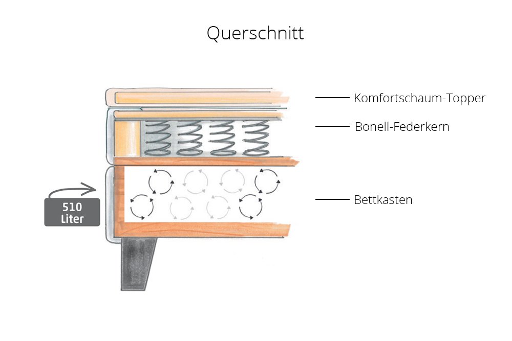 - Funktionen: Bettkasten, seitlich zu öffnen, mit Ventilationsöffnungen