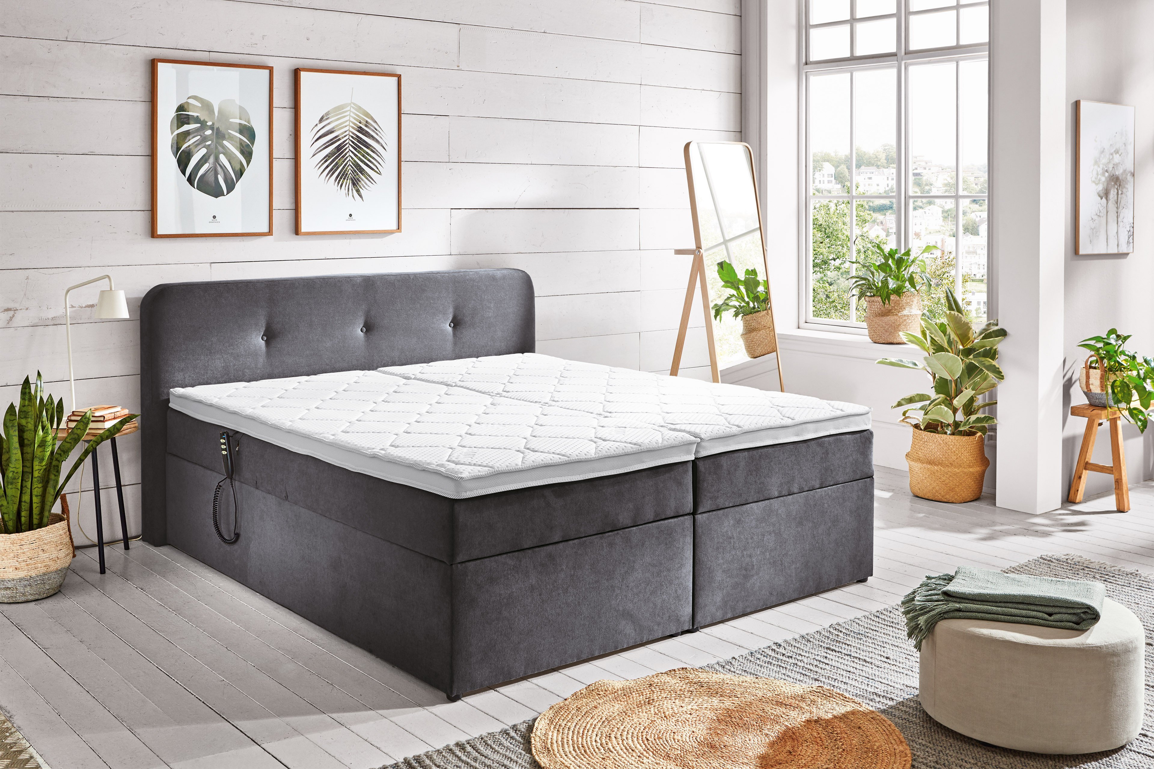 - Funktionen: motorische Kopf- und Fußteilverstellung inklusive Kabelfernbedienung und geräumiger Bettkasten