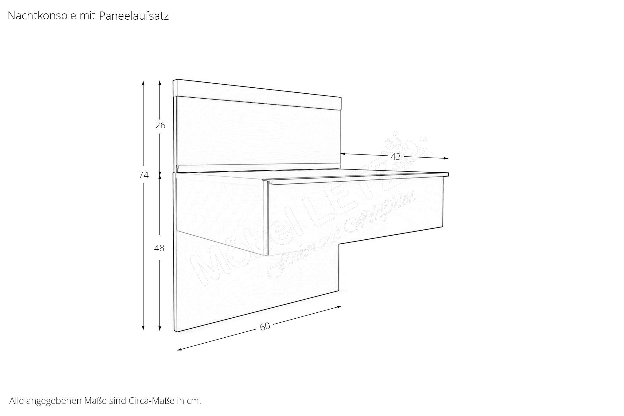 (ca. cm) | Nachtkonsolen mit Paneelaufsatz je