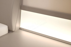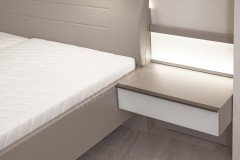 - Nachtkonsolen: mit Paneelaufsatz inklusive Glasauflage mit LED-Beleuchtung, Abschlussleiste in Korpusfarbe