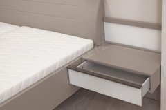 - Nachtkonsolen: in schwebender Optik mit Stützplatte, je 1 Schubkasten