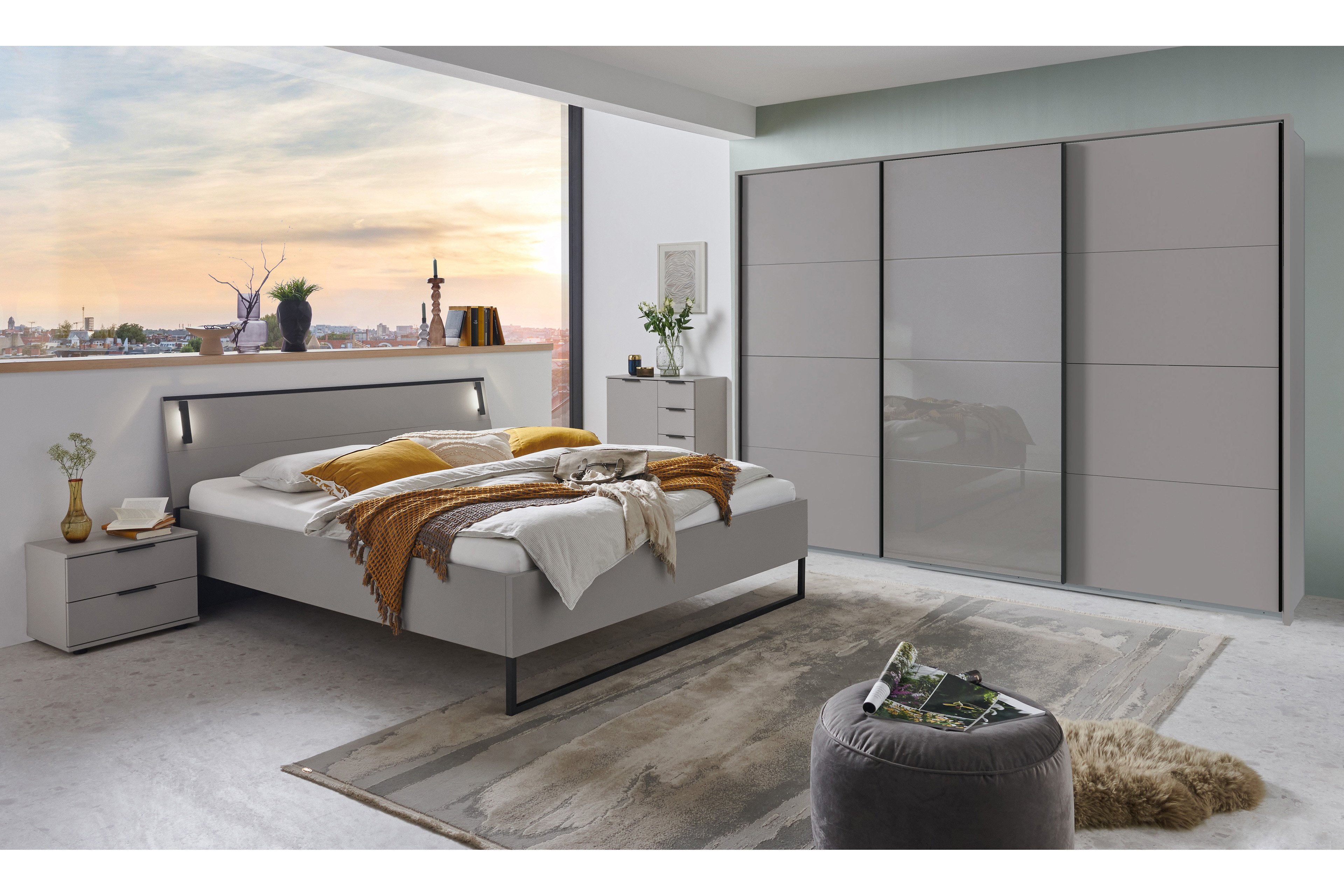 Das Schlafzimmer Tilburg von Wimex ist eine besondere Kombination aus modernem Design, praktischer Funktionalität und gemütlicher Wärme, die Ihr Schlafzimmer in eine Oase der Ruhe verwandelt. Der Kleiderschrank vereint auf einer Breite von ca. 270 cm drei Schrankelemente und bietet dank der mittigen Glasfront einen Hauch von Leichtigkeit und Glanz. Zwei edle Farbwelten stehen Ihnen bei Tilburg zur Verfügung und schenken Ihnen mit Saharagrau eine warme, entspannte Atmosphäre und mit Grafit eine moderne, ausdrucksstarke Raumstimmung. Der Schwebetürenschrank überzeugt hierbei nicht nur äußerlich: Im Inneren bieten drei Elemente jeweils einen Fachboden und eine Kleiderstange, damit Sie Kleidung, Accessoires und Betttextilien übersichtlich sortiert und griffbereit haben. Mit unseren Zusatzoptionen ergänzen Sie den Schrank mit zusätzlichem Schrankzubehör wie weiteren Böden, Dämpfungsbeschlägen, einem Schubkasteneinsatz oder einer Wäscheeinteilung – ganz flexibel und genau da, wo Sie es brauchen. So entsteht maßgeschneiderter Stauraum, der Ihren Alltag erleichtert und Ihnen jeden Morgen ein gutes Gefühl schenkt. Zum Wimex Schlafzimmer-Set gehört ein Bett mit einer Grundliegefläche von 140x200 cm, das sich in weiteren Größen problemlos anpassen lässt. Eine praktische Kopfteilbeleuchtung setzt sanfte Akzente und schafft eine gemütliche Abendstimmung. Abgerundet wird das Angebot durch einen passenden Nachtschrank, der bei Bedarf durch einen weiteren Nachtschrank ergänzt werden kann. Zusammen mit dem Konfigurator lässt sich Tilburg individuell planen: Wählen Sie aus verschiedenen Schränken, Kommoden und Zubehörteilen und stellen Sie ganz in Ruhe Ihre persönliche Traumeinrichtung zusammen. Tilburg von Wimex – eine Einladung, Ruhe, Ordnung und Wohlbefinden im Schlafzimmer zu erleben ...