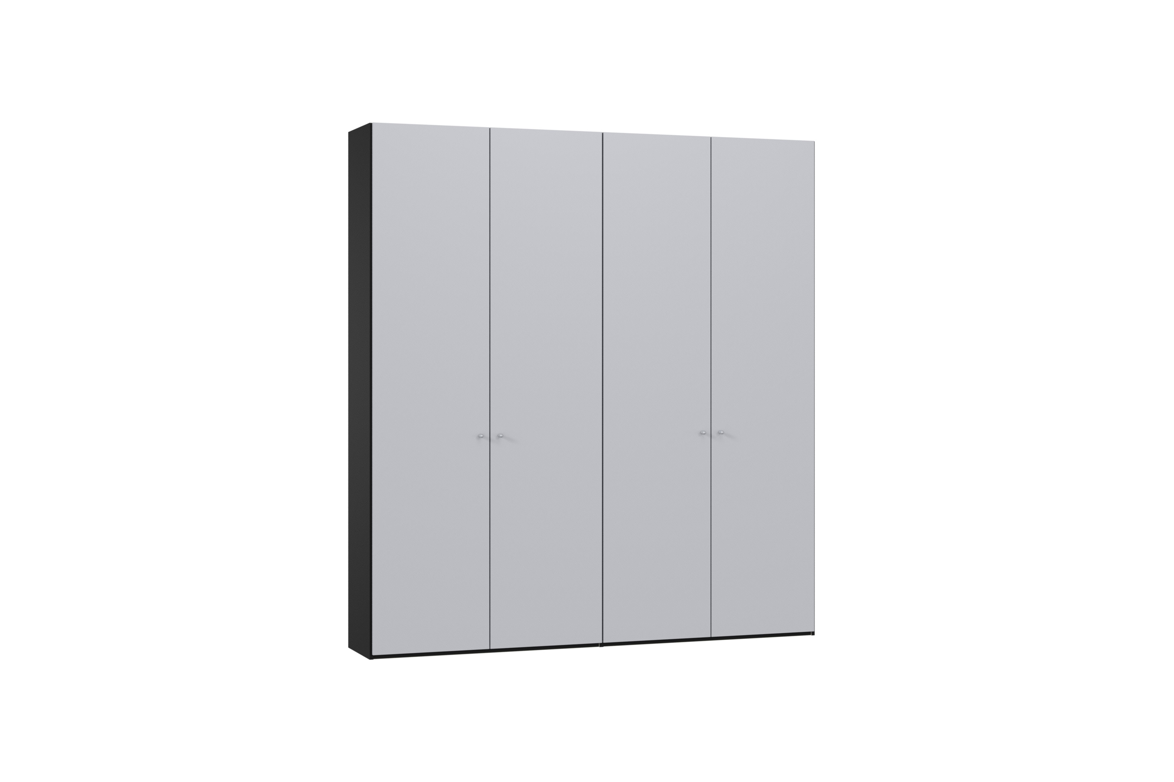 In einer etwas größeren Variante, mit ungefähr 203 cm in der Breite, stellt sich in diesem Angebot der Kurztiefenschrank aus der Longline-Kollektion von JUTZLER vor. Mit vier Drehtüren, die eine Oberfläche aus hellgrauem Mattglas haben, einem novaschwarzen Korpus und zierlichen Knopfgriffen erscheint der Schrank in einem modernen und edel anmutenden Look. Sie bevorzugen eine andere Farbe für die Glasauflage beziehungsweise eine alternative Oberflächen-Ausführung und/ oder ziehen optisch auffälligere Griffe vor? Stöbern Sie in aller Ruhe durch unsere zahlreichen Zusatzoptionen und wählen Sie wunschgemäß das Outfit für Ihren neuen Schrank aus. Der Innenraum, der hier bereits zwei Fachböden enthält, ist ebenfalls frei bestückbar. Ob zusätzliche Böden, Innenschubladen, Schuhablagen oder Kleiderstangen - hier finden Sie bevorzugtes Einrichtungszubehör. Um die Bedienung der Türen besonders komfortabel zu gestalten und das Schrank-Innere zu beleuchten, finden Sie auch Dämpfungsbeschläge und eine sensorgesteuerte LED-Beleuchtung in unseren Zukauf-Angeboten. Das Schrank-Programm von JUTZLER ... lässt fast keine Wünsche offen.