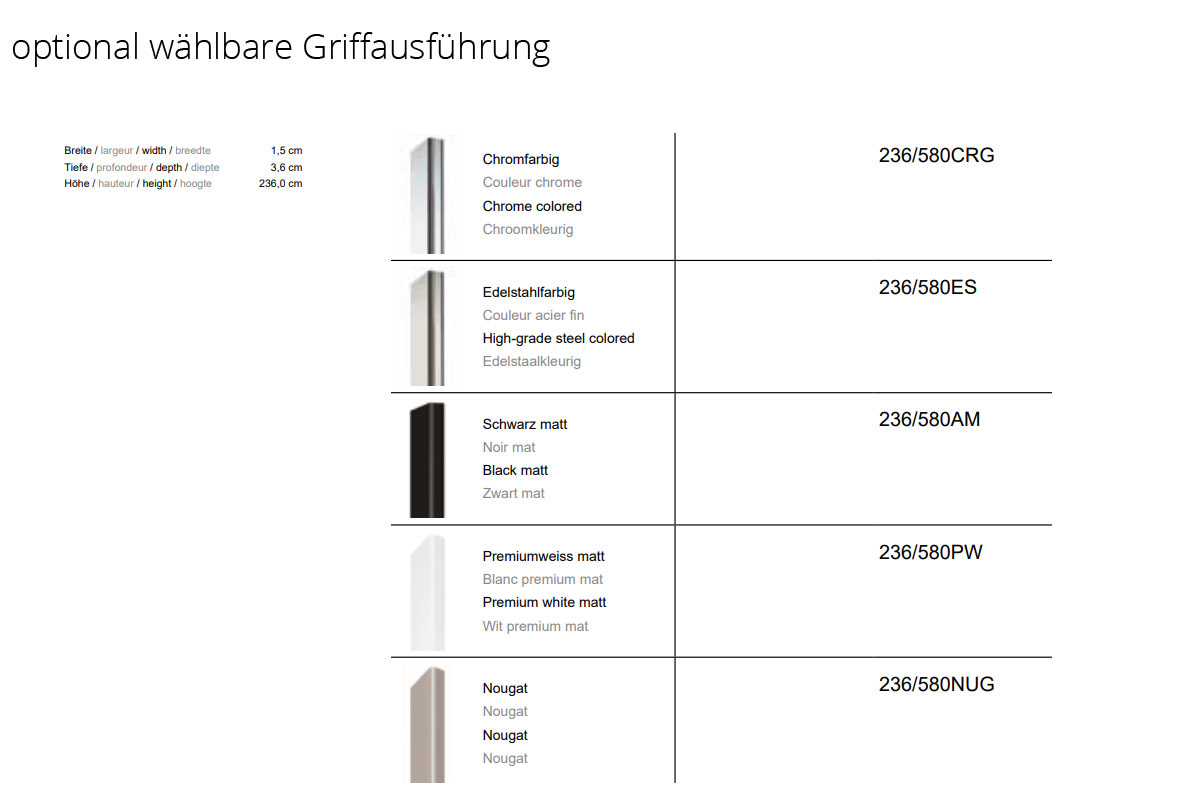 - Griffausführung: Aufclipprofile edelstahlfarben