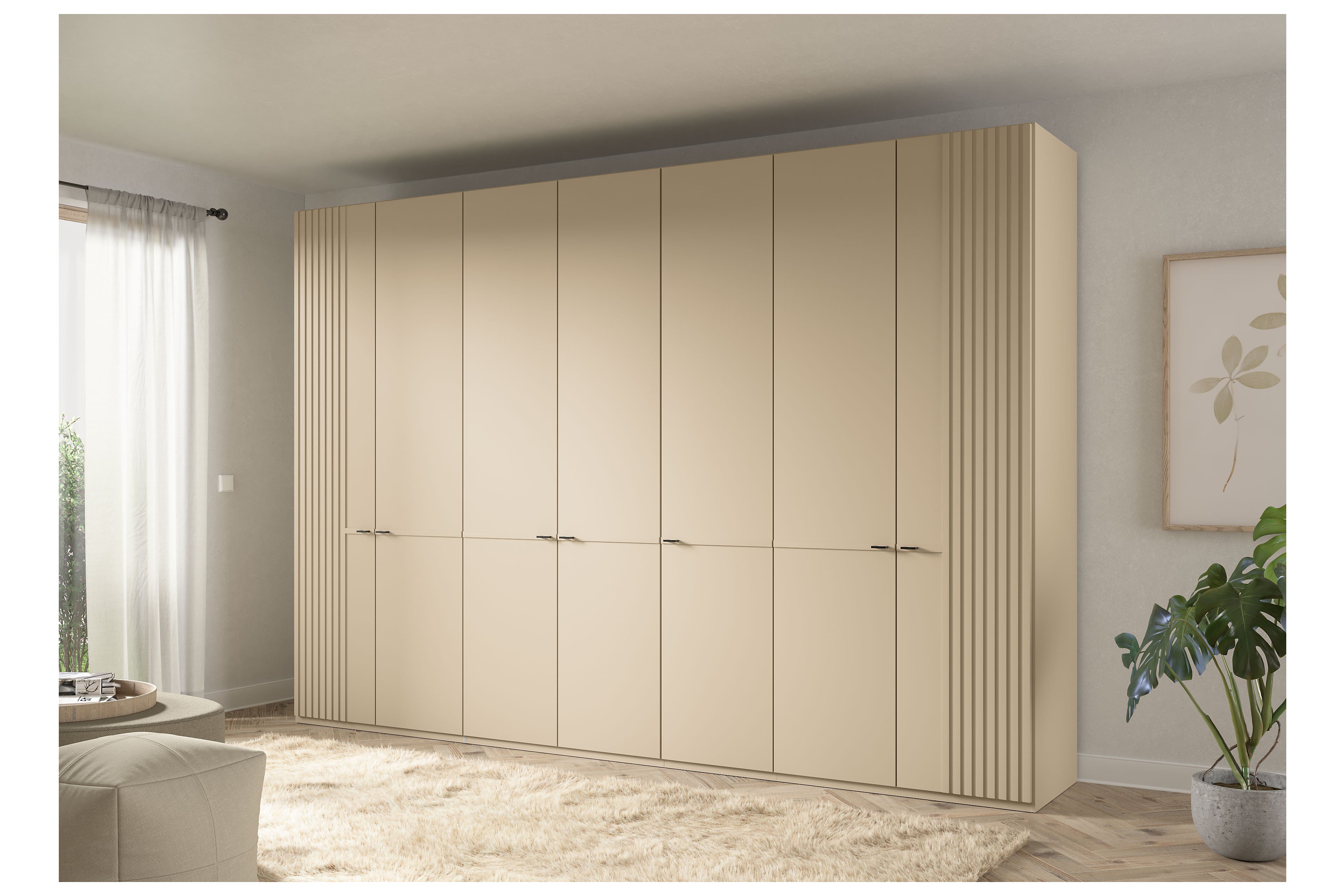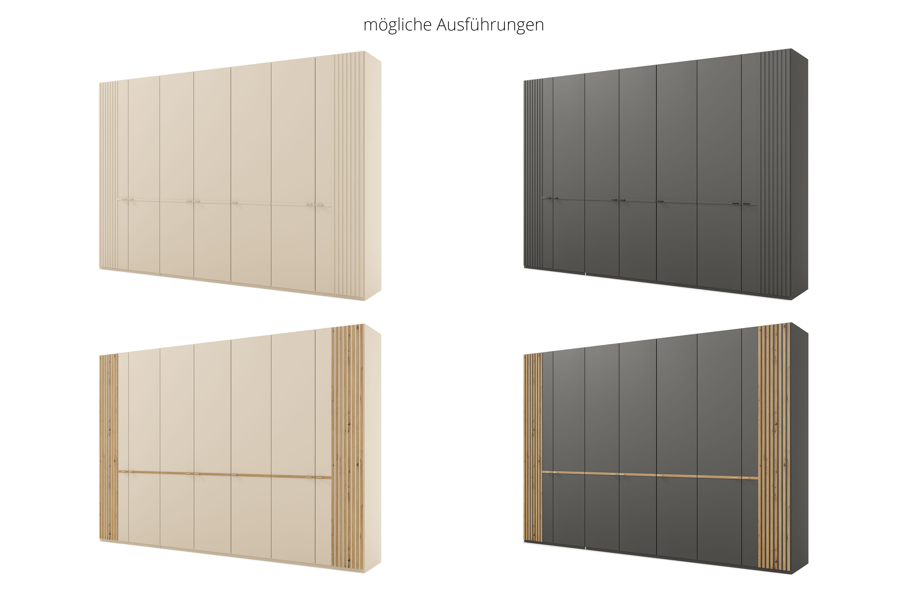 - Kleiderschrank: 7 Drehtüren mit Querleiste, Außentüren mit Lamellen
