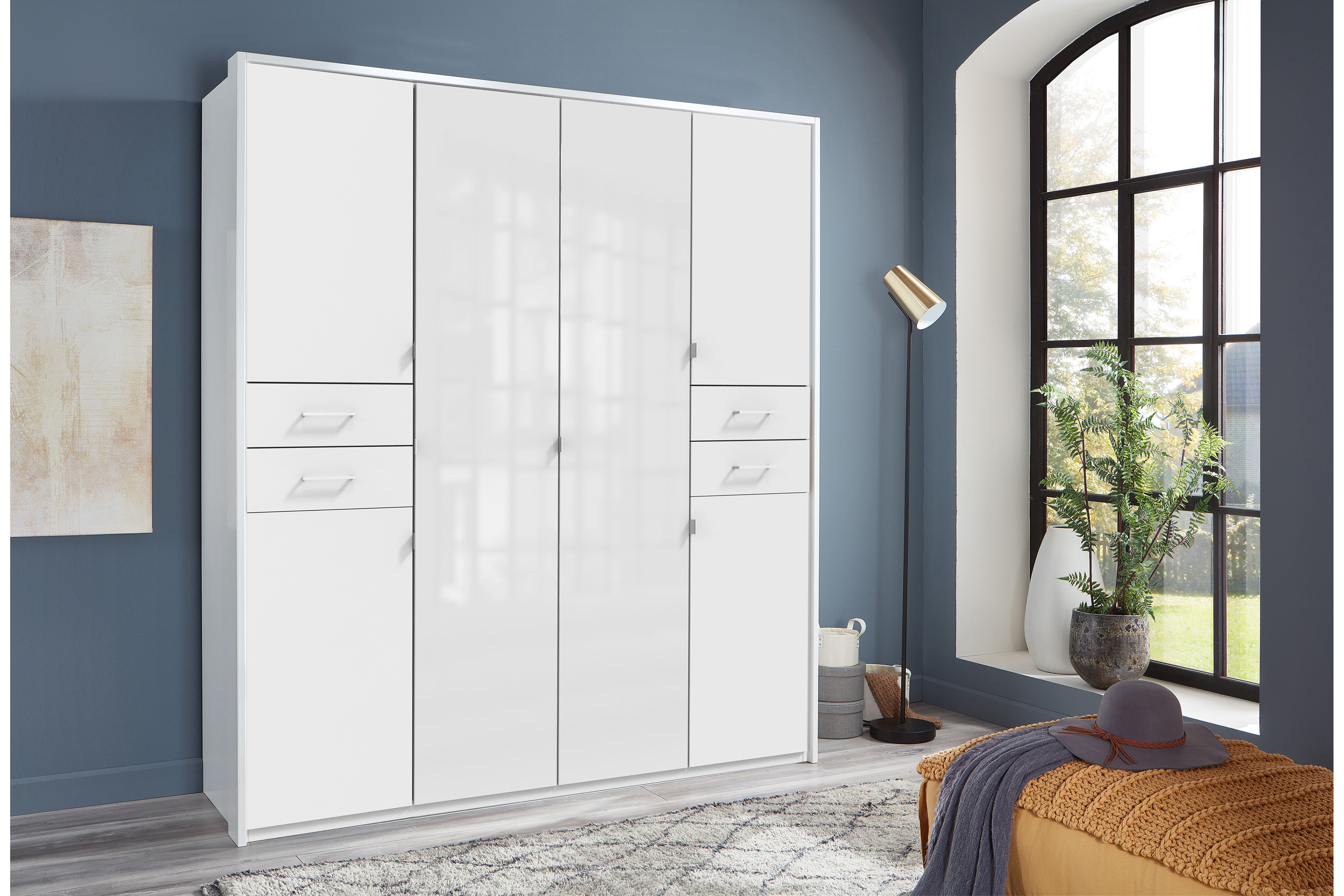 Der Kleiderschrank Danzig von Wimex schenkt Ihnen großen Stauraum auf kleiner Fläche. Der Schrank ist gerade mal knapp 183 cm breit und hat dennoch allerhand zu bieten: Hinter seinen zwei Glastüren verbirgt sich ein etwa 90 cm breites Schrankelement, das sowohl eine Kleiderstange als auch einen Wäscheboden beherbergt. Somit eignet sich das mittlere Schrankteil perfekt für sommerliche Jacken, warme Wintermäntel, bunte Blusen und schicke Hemden. Links und rechts außen besitzt der Wimex Schrank gleich noch praktische Schubkästen für kleinere Textilien und Wäschestücke. Die Schubfächer sind dank ihrer durchdachten Höhe bequem erreichbar. Ob beim Einräumen oder beim Herausholen – hier erreichen Sie den Inhalt in körperschonender Haltung und müssen sich nicht extra bücken. Mit unseren Zusatzoptionen können Sie den Kombischrank mit weiteren Einlegeböden ausstatten und auf Wunsch in einer anderen Farbe bestellen. Noch mehr Zubehör und weitere Schrankgrößen finden Sie im Konfigurator. Danzig von Wimex – geräumig und doch nicht zu groß ...